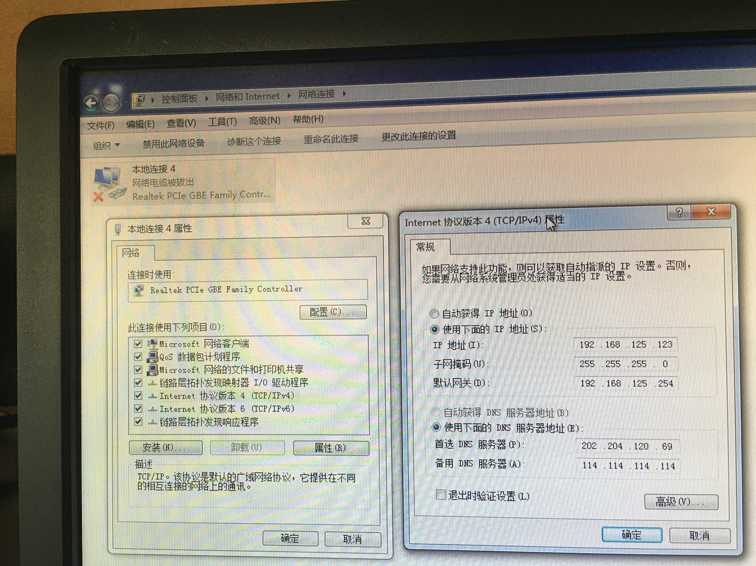 在笔记本上,同样是找到本地连接的属性