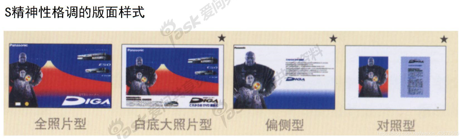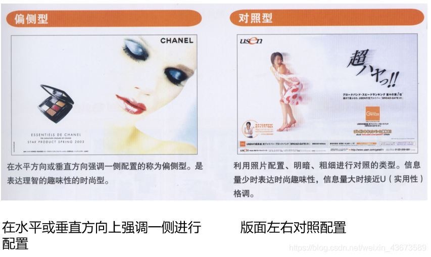 S对称型:照片、文字均等配置;安定、稳重