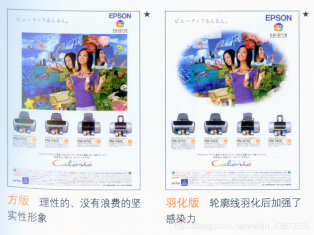 扣底版轻松,羽化版有感染力。沿照片的图像外形抠底后,强调了自由的曲线和倾斜线,造成了开放的形象。图像的外边缘经过羽化或椭圆形处理后,变得安稳,羽化使图像与背景的对比关系弱化,会形成优雅、内向的形象。