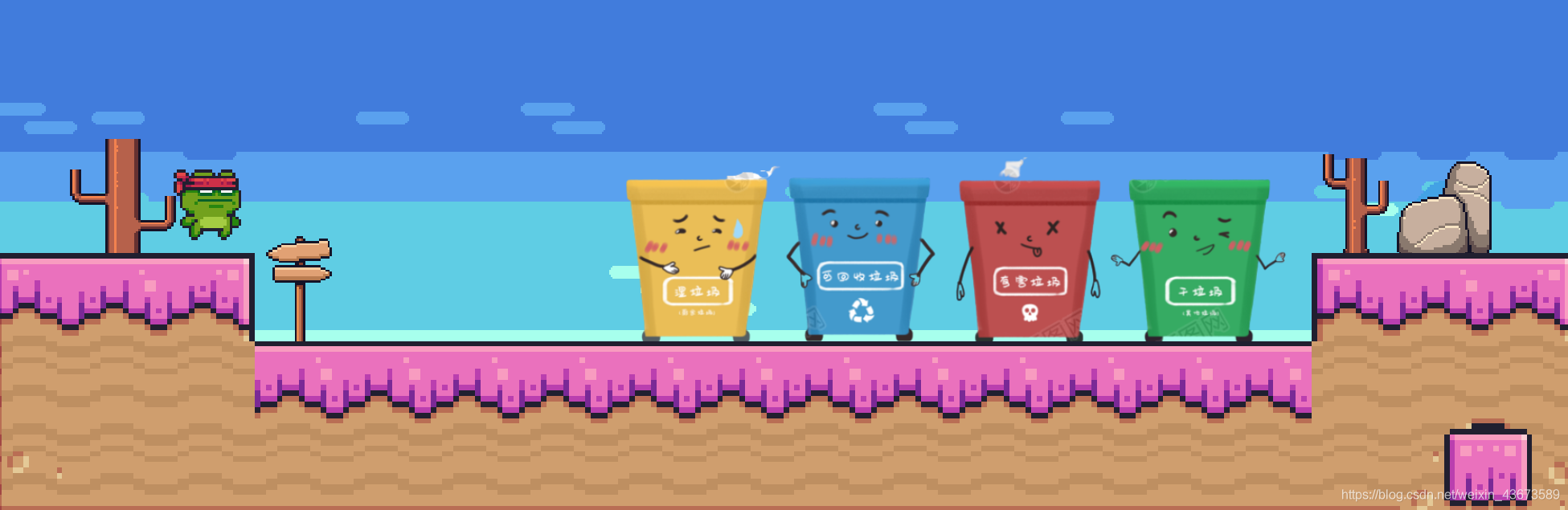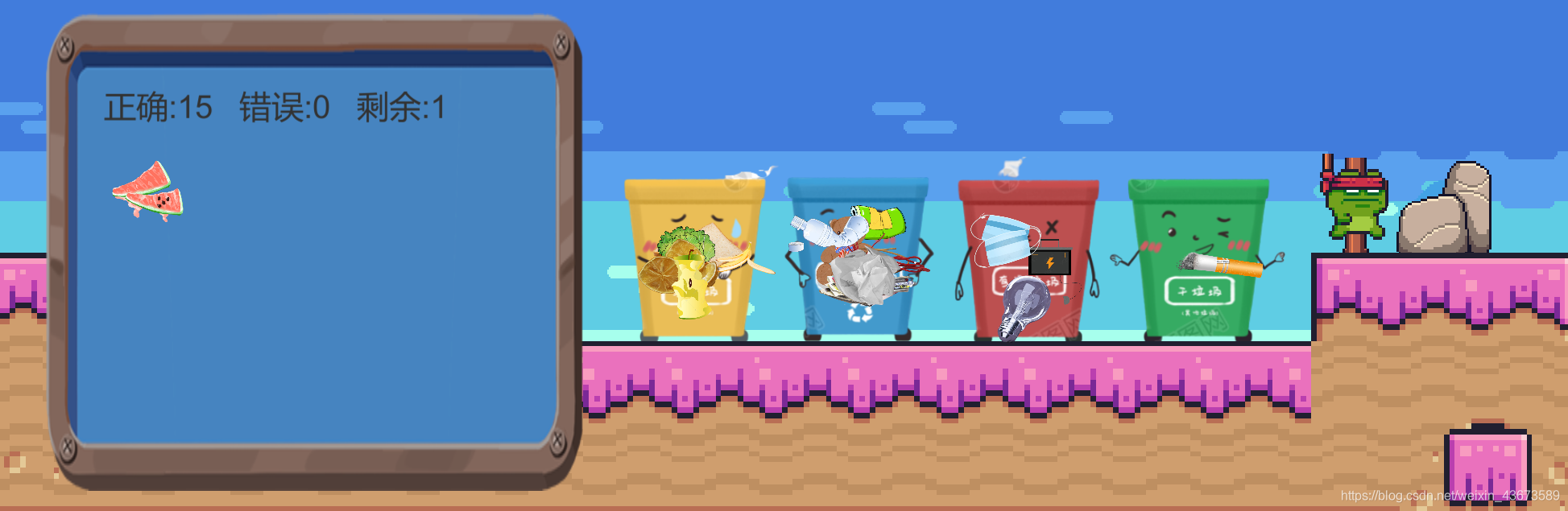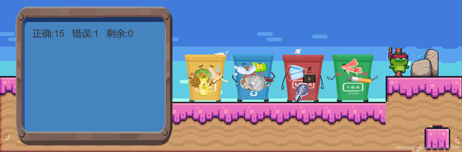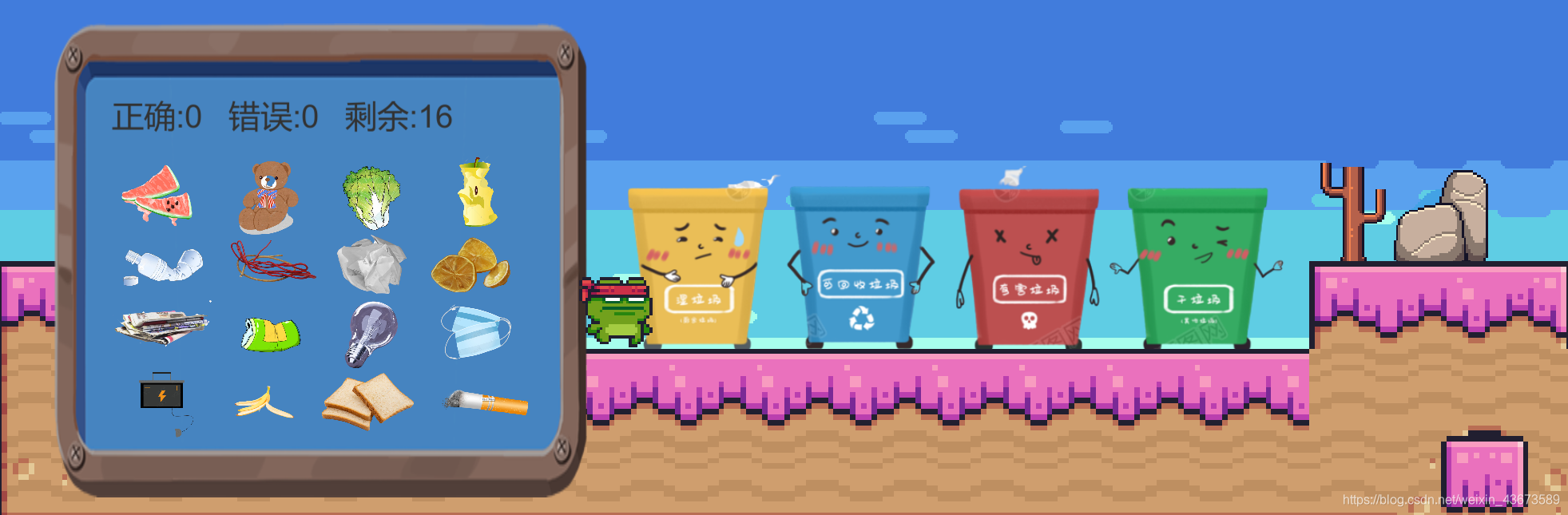 对话框上摆放16个对象,也就是待分类的垃圾。