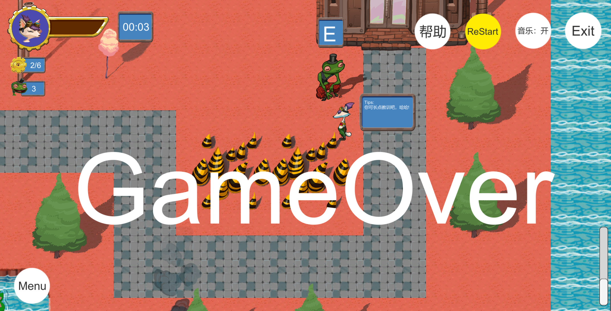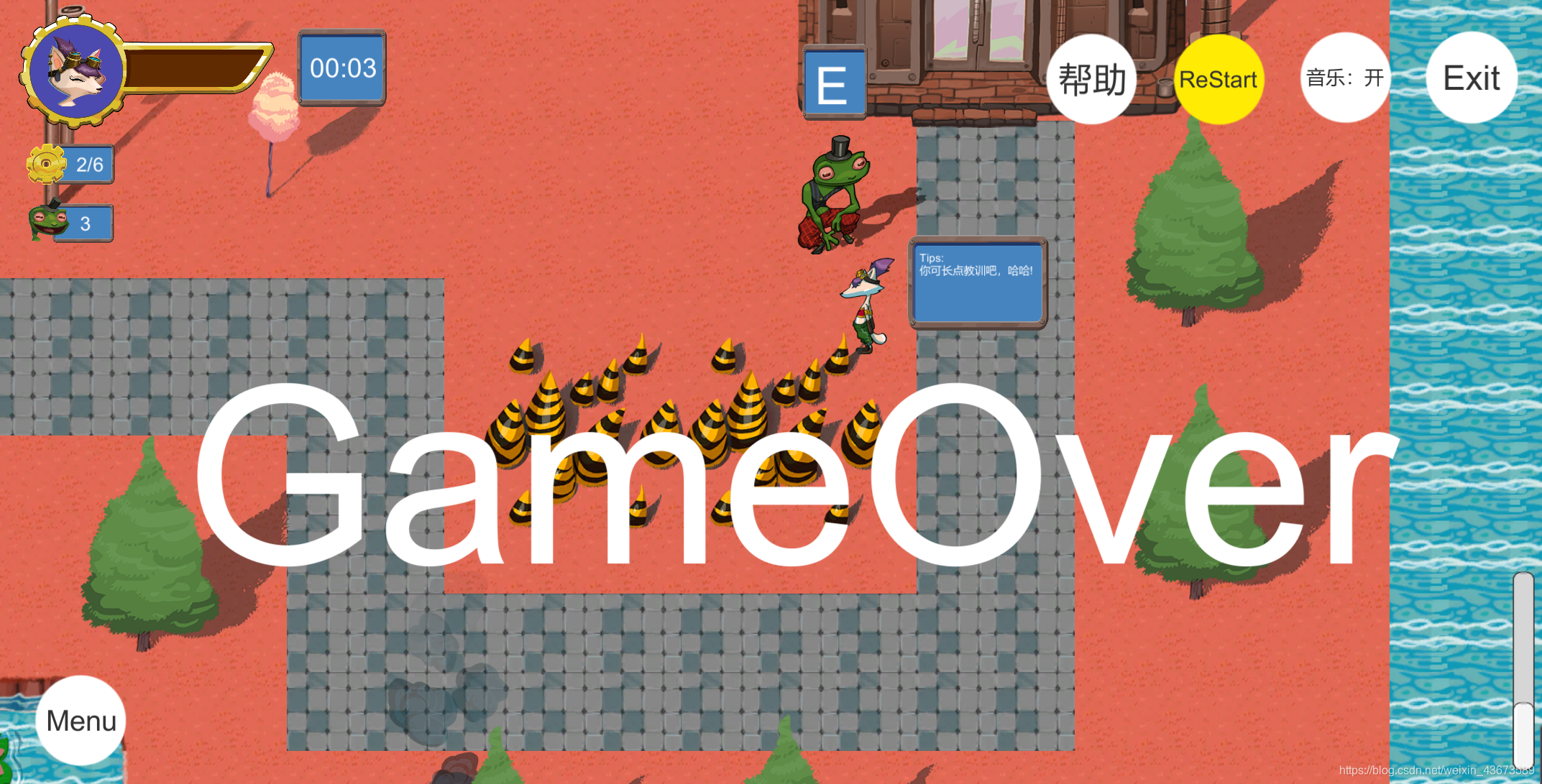 游戏失败时高亮重启按钮