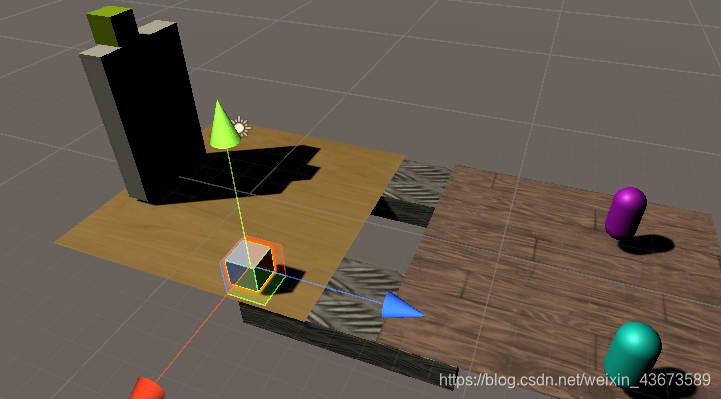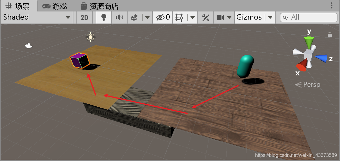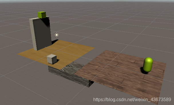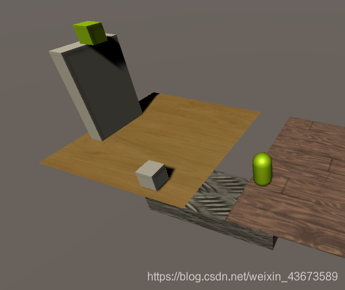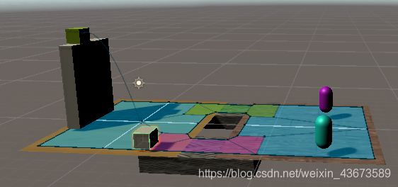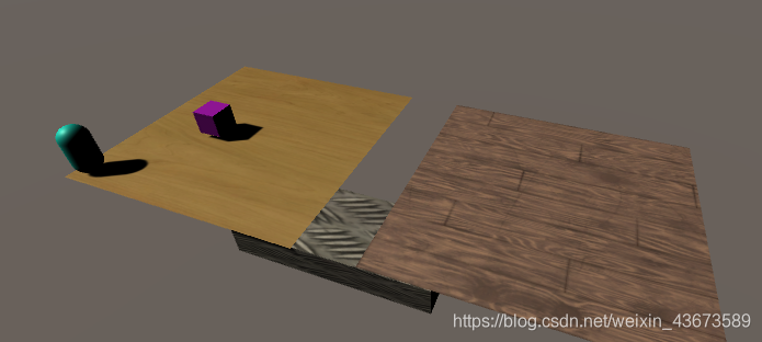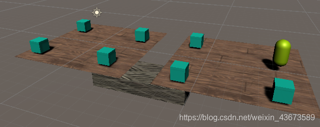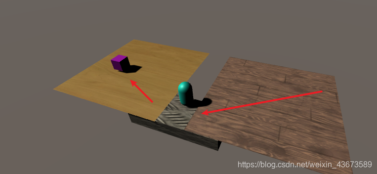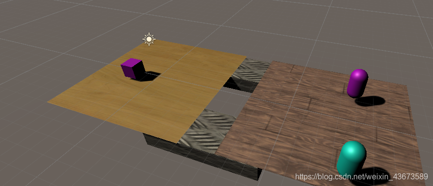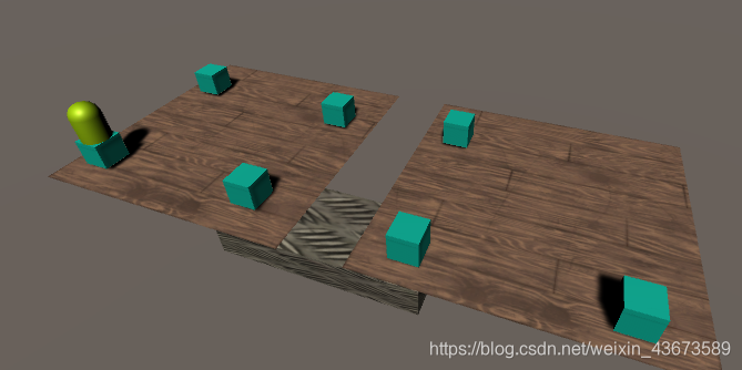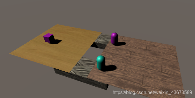 两个平面,一个立方体,一个胶囊,一座桥(立方体)
