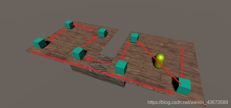 这个cube只是作为一个连接物,并不从上面过(逻辑有点奇怪)