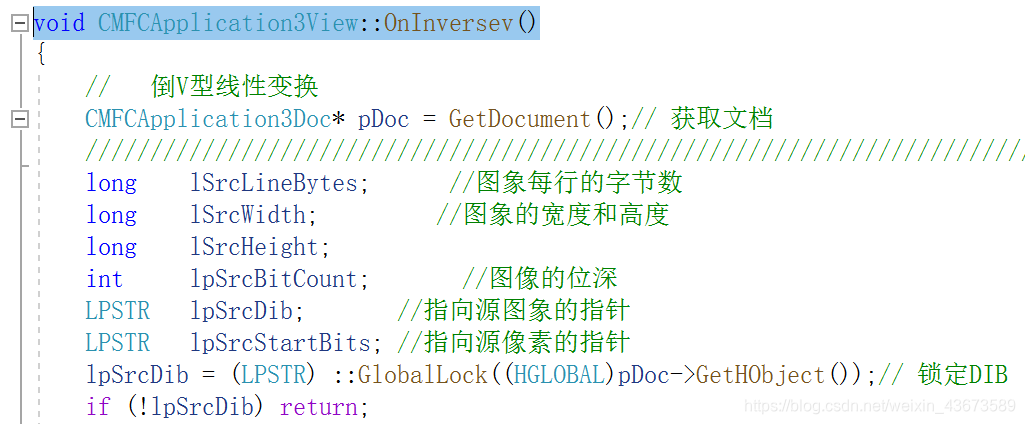lpSrcStartBits = pDoc->m_dib.GetBits(lpSrcDib); // 找到DIB图象像素起始位置