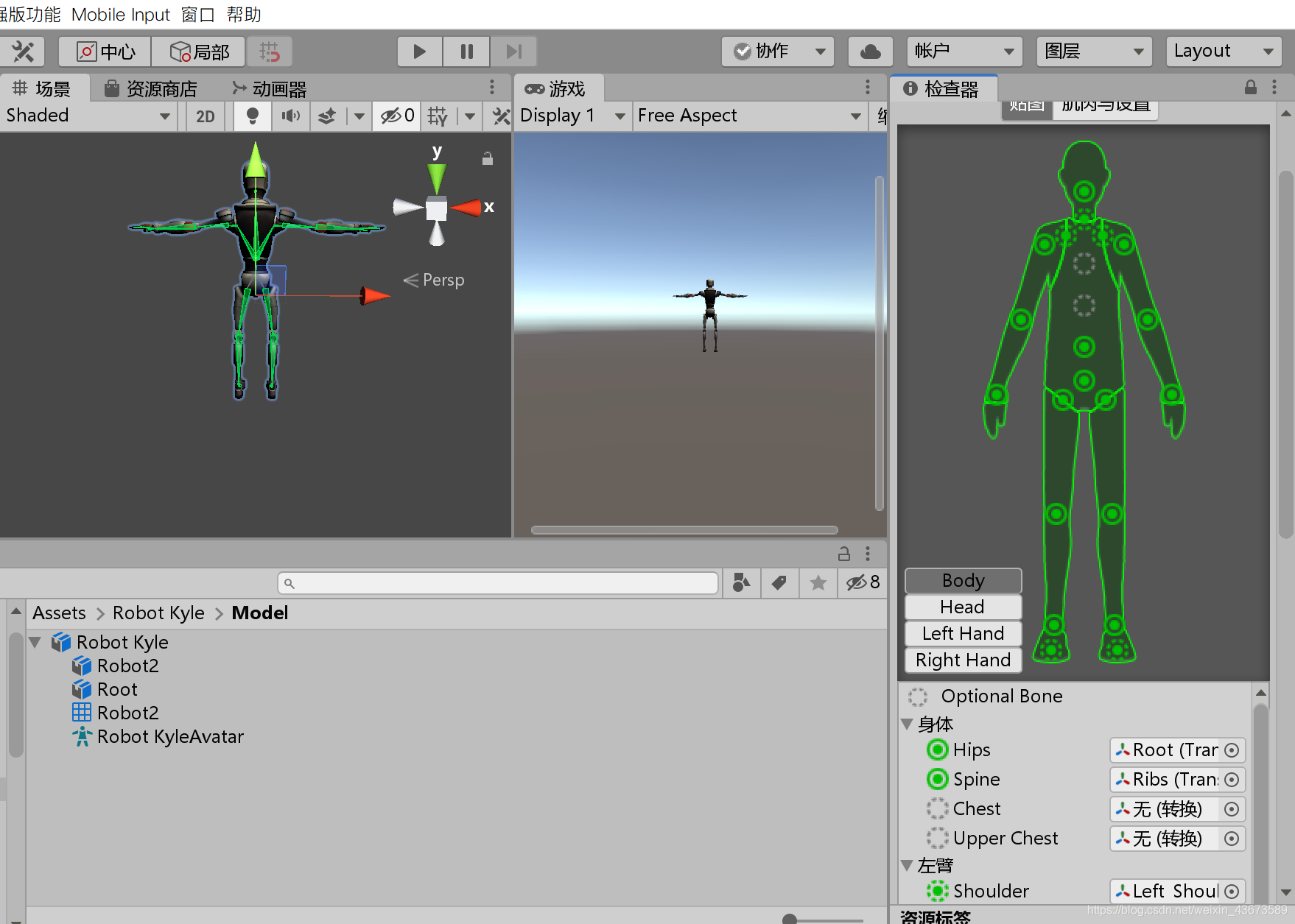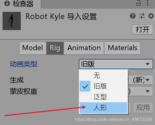 Robot模型在没有Avatar的情况下是无法将动画直接应用模型上的,如果导入的模型没有Avatar,按照图示操作创建