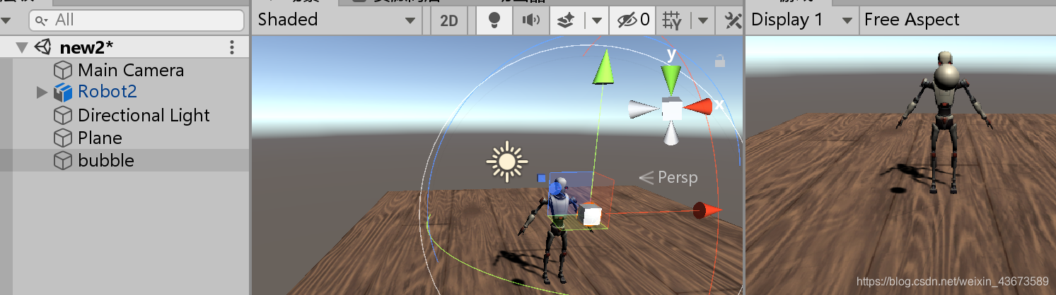 using System.Collections; using System.Collections.Generic; using UnityEngine; public class CurveCtrl : MonoBehaviour { Transform bubble; Vector3 originalScale;//设定初始泡泡大小 // Start is called before the first frame update void Start() { bubble = transform.Find("Root/Ribs/Neck/Head/bubble");//通过路径来获取bubble originalScale = bubble.localScale; } // Update is called once per frame void Update() { float curve = GetComponent<Animator>().GetFloat("CurveValue");//通过调用安妮梅特组件的GetFloat函数来获取值,来修改泡泡的大小 bubble.localScale = new Vector3(originalScale.x * curve, originalScale.y * curve, originalScale.z * curve);//根据走路节奏调整泡泡大小,让其或大或小 } }效果