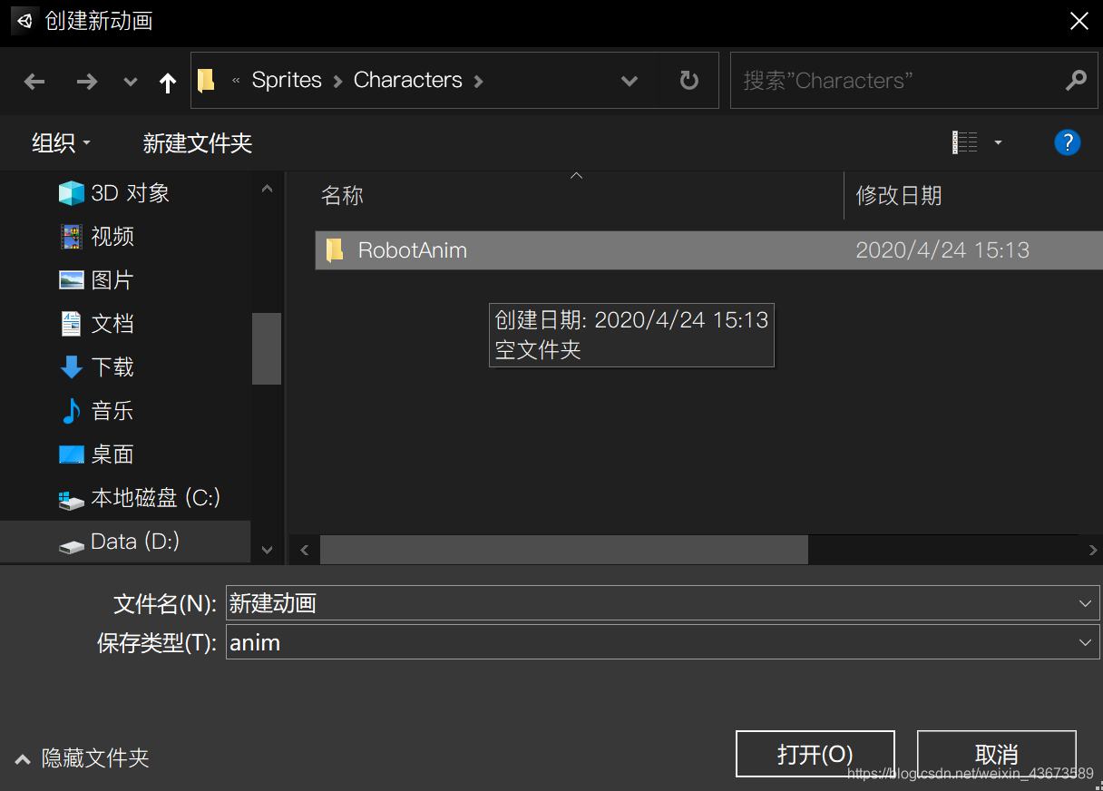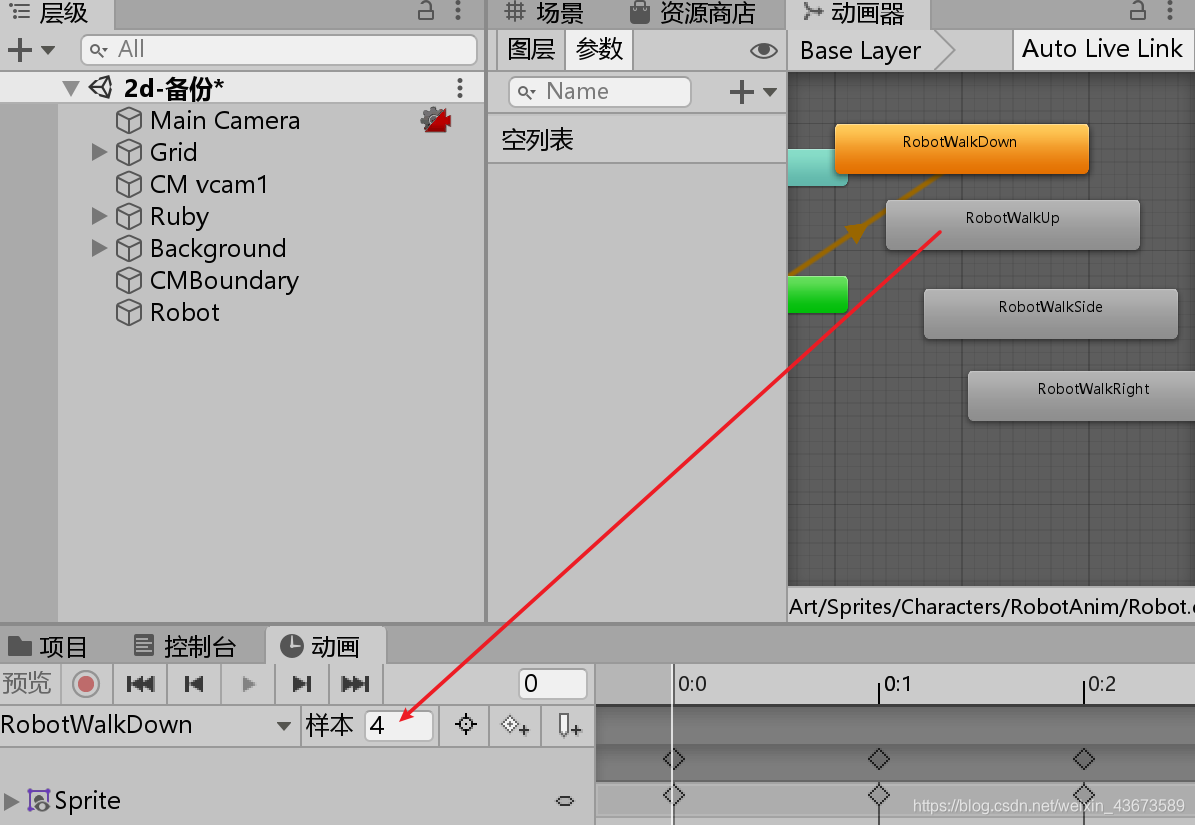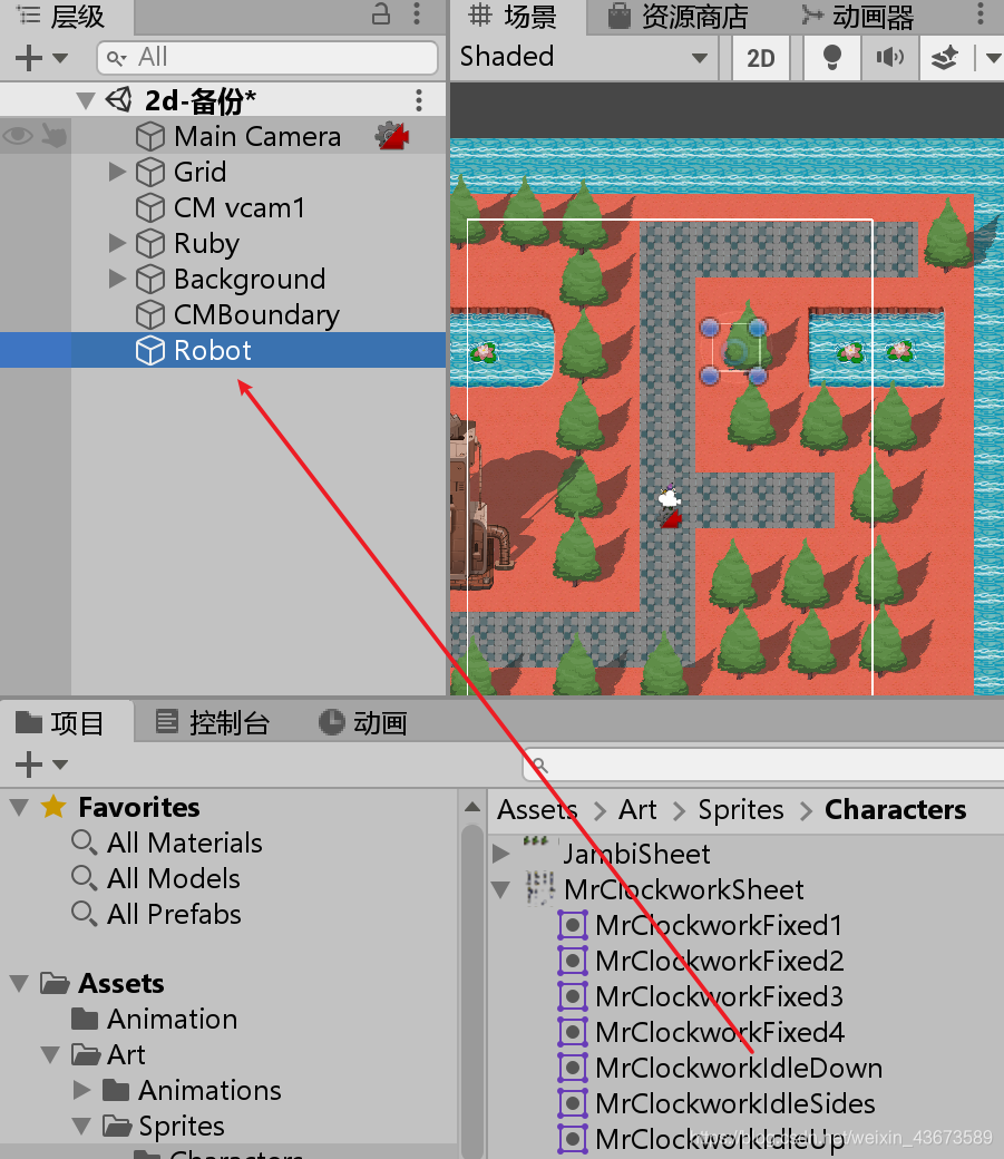 拖动一个素材,重命名为Robot,以
