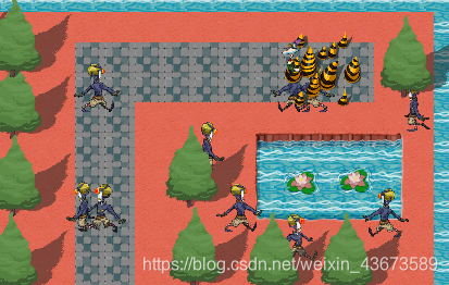 现在就是要让玩家踩到雷区,然后让两个怪再出来
