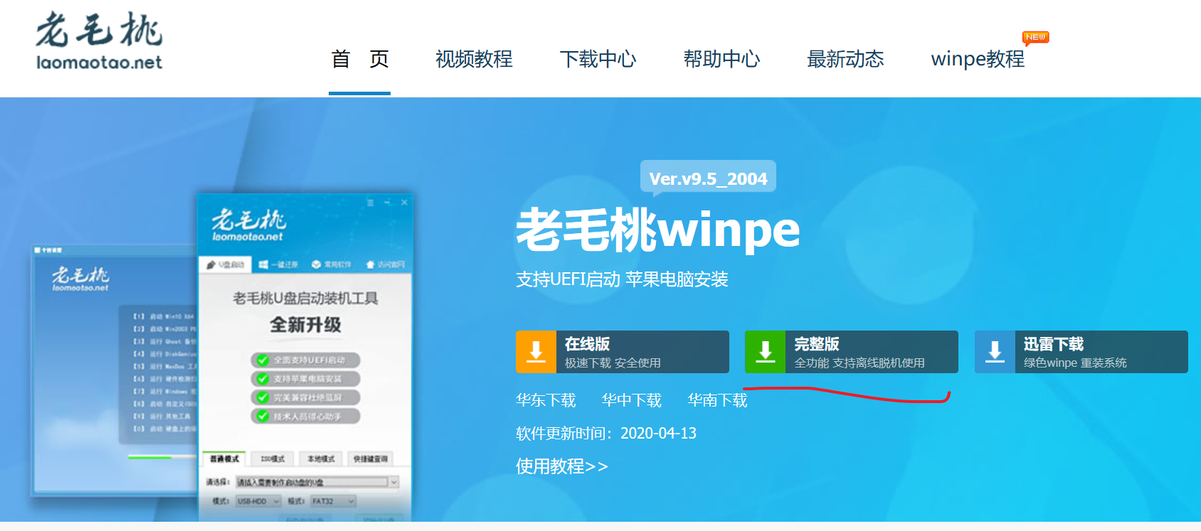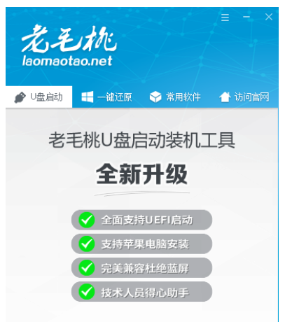 2)下载WinPE启动盘制作软件,推荐 老毛桃 (什么鬼名字,你咋不起名猕猴桃呢2333