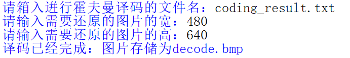 #还原原始的bmp图像,遍历霍夫曼编码的结果,对于每一个被遍历到的字符均在码字列表