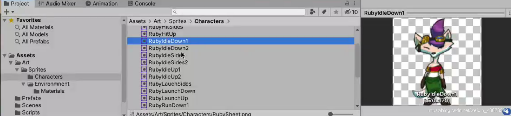 把运动状态的上下左右的动画都绑定在ruby上,还有静止的上下左右一并绑定上