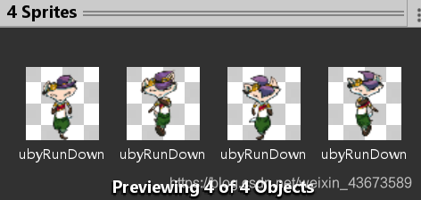 一同选定一组图片作为动画的4帧,拖到对象栏上