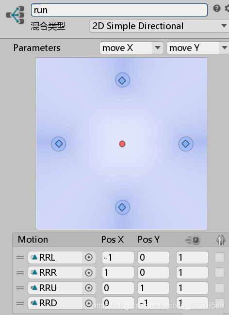 using System.Collections; using System.Collections.Generic; using UnityEditor; using UnityEngine; public class PlayerControl : MonoBehaviour { public float speed = 15f; Rigidbody2D rbody;//定义2d刚体 Animator anim;//定义动画 Vector2 lookDirection = new Vector2(1, 0);//初始向x看 // Start is called before the first frame update void Start() { rbody = GetComponent<Rigidbody2D>();//获取2d刚体 anim = GetComponent<Animator>();//获取动画组件 } // Update is called once per frame void Update() { float moveX = Input.GetAxisRaw("Horizontal"); float moveY = Input.GetAxisRaw("Vertical"); Vector2 moveVector = new Vector2(moveX, moveY); if(moveX!=0||moveY!=0) { lookDirection = moveVector; } Vector2 position = transform.position; position.x += moveX * speed * Time.deltaTime; position.y += moveY * speed * Time.deltaTime; transform.position = new Vector2(position.x, position.y); rbody.MovePosition(position);//用刚体移动可以消除画面抖动 anim.SetFloat("move X",lookDirection.x);//为动画集赋值 anim.SetFloat("move Y",lookDirection.y); anim.SetFloat("runspeed", moveVector.magnitude);//状态集的切换由运动矢量决定 //赋值必须与状态集命名一样 } }效果