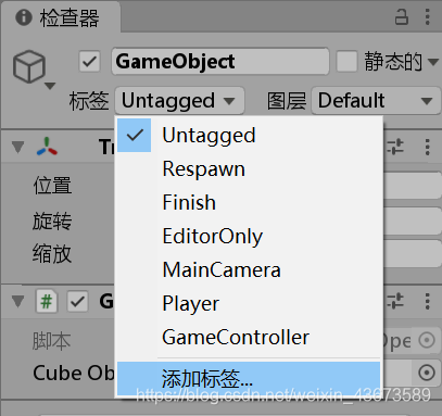 鼠标右键 激活脚本中设定的public类型的cube object对象