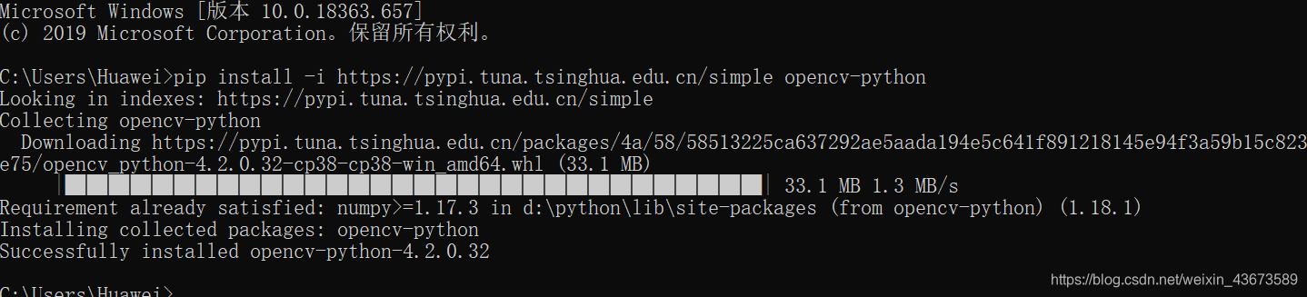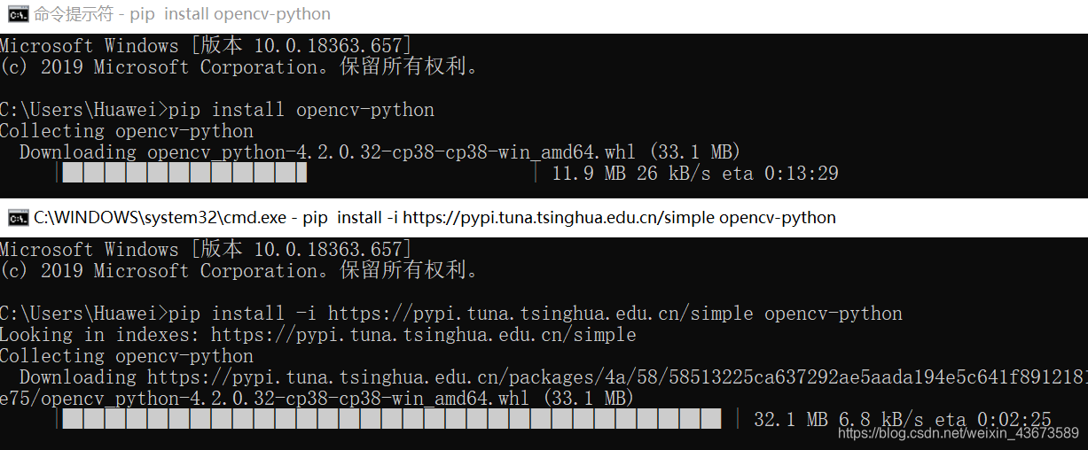 pip install -i https://pypi.tuna.tsinghua.edu.cn/simple opencv-python