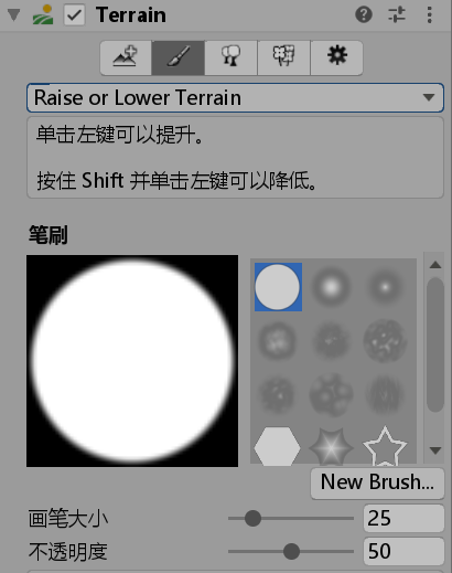 不透明度是调整地形高低的关键因素。0就刷不出来。