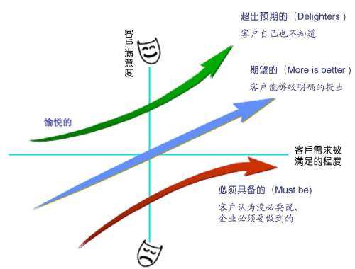 该模型将需求可以分为三种,包括基本型需求,期望型需求和兴奋型需求。