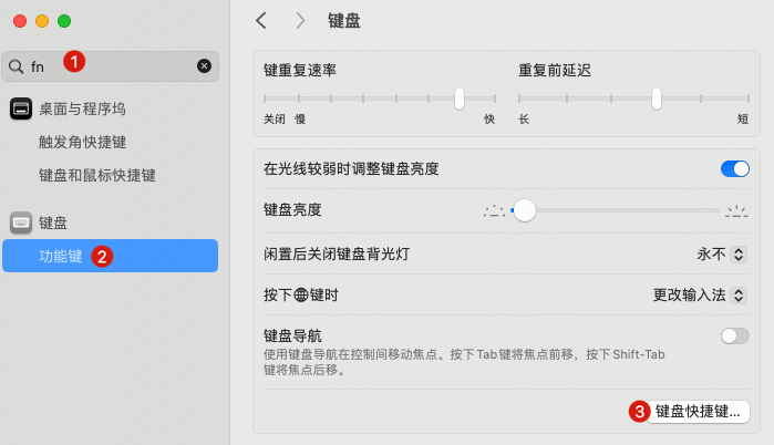 系统设置->键盘->键盘快捷键->功能键 || 或者 直接搜索fn