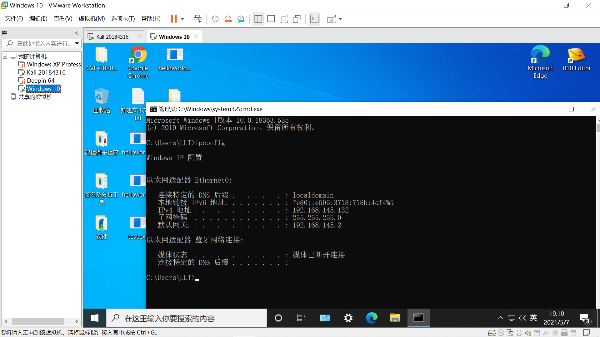 目标主机Windows10,参考视频如下。