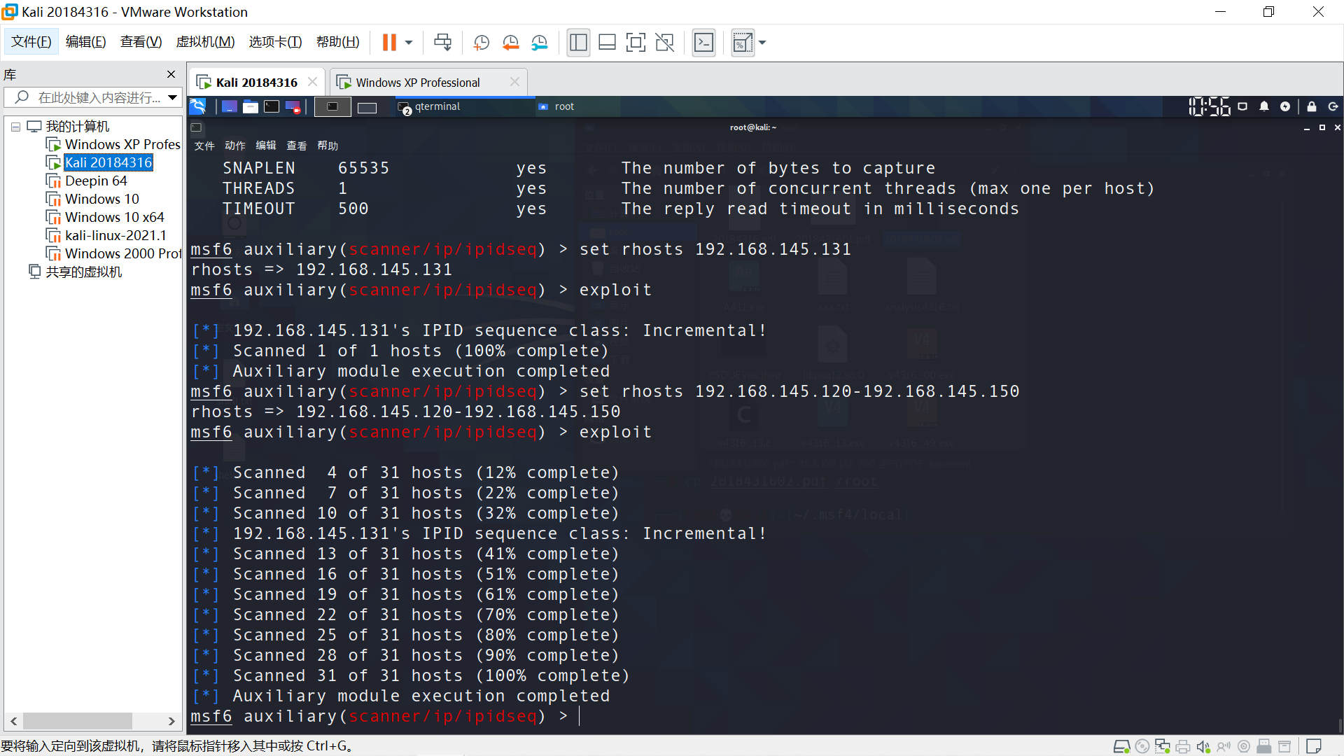 下图可见,我只开了Windows XP一个虚拟机,只扫出对应的IP。