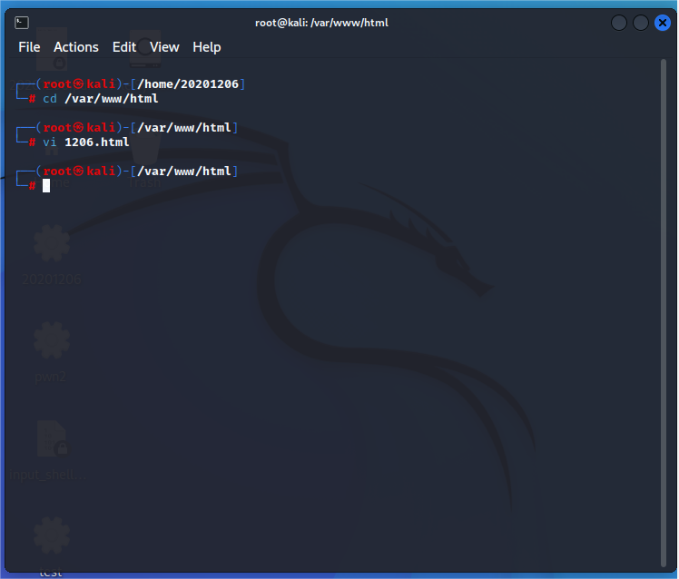 终端输入cd /var/www/html进入Apache目录下;