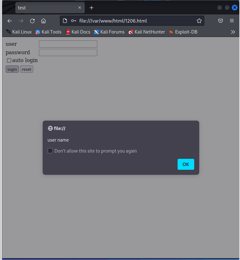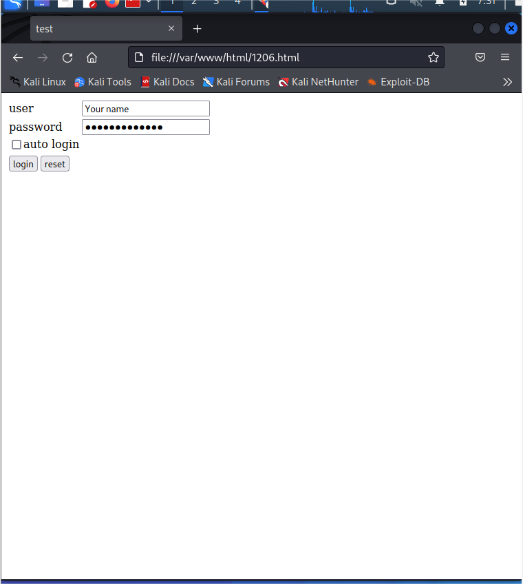 在网页中输入/var/www/html/1206.html,显示此网页表单。