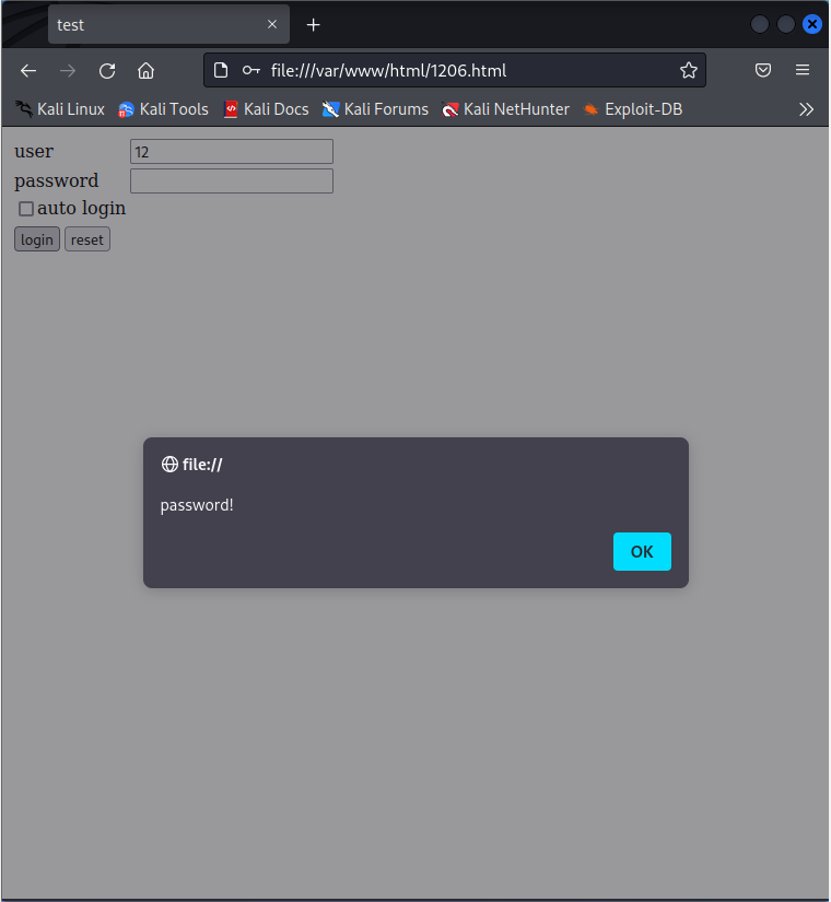 alert("password!");
