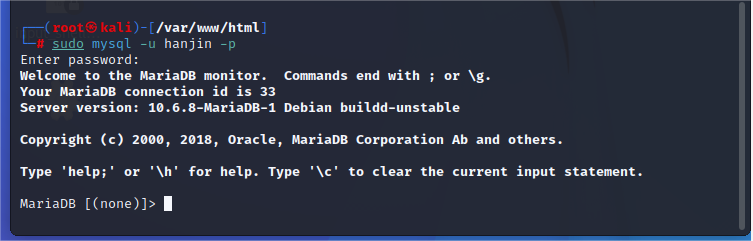 输入sudo mysql -u root -p使用mysql,默认密码是password。