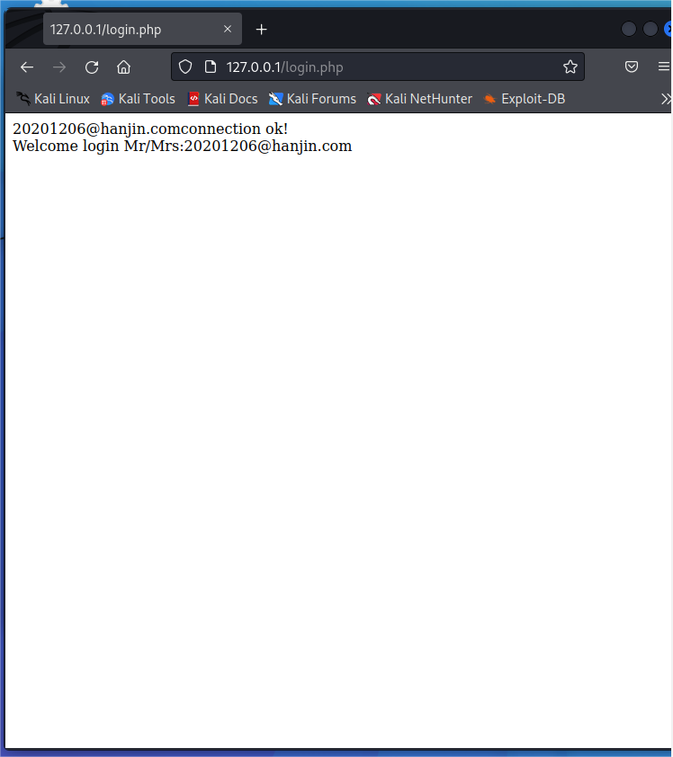 insert into login values ('20201206@hanjin.com', '20201206');//插入数据