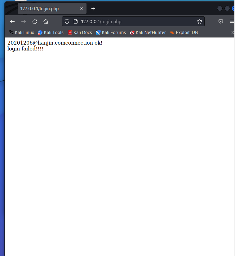 echo "<br> login failed!!!! <br> " ; }