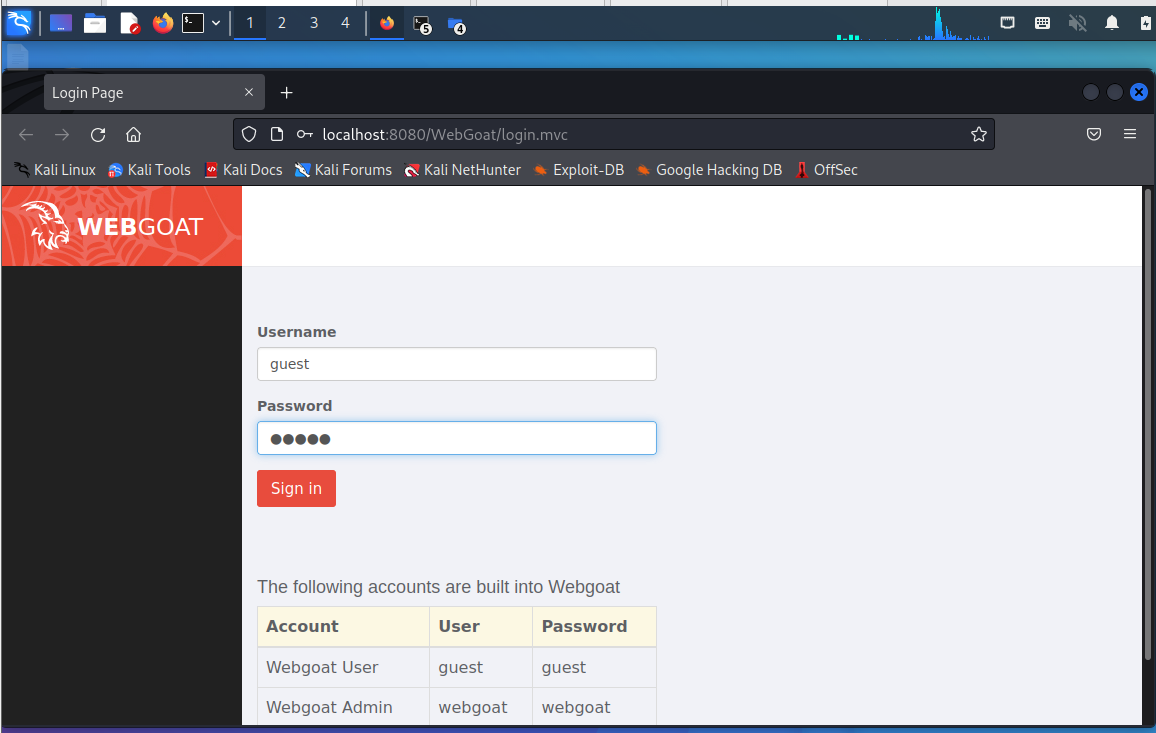 2. 登录webgoat