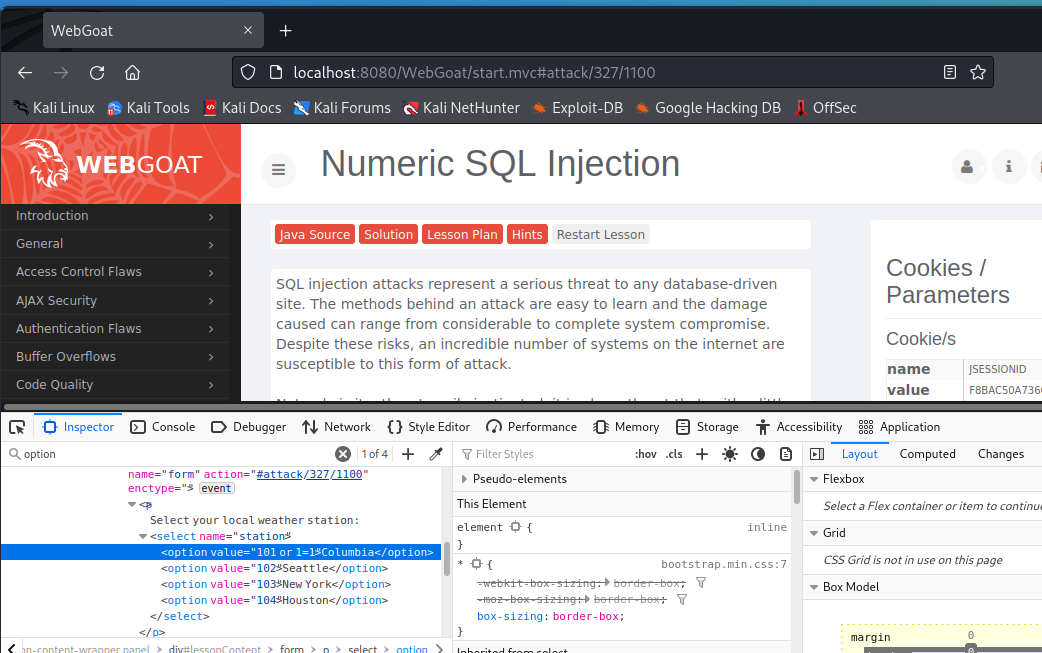 在菜单栏Injection Flaws下拉选项选择Numeric SQL Injection