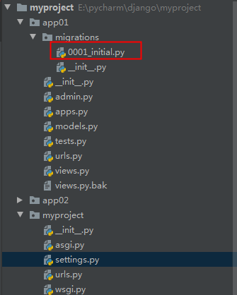 然后执行命令python manage.py makemigrations,执行完后会生成如下文件,记录生成数据库表结构的一些数据