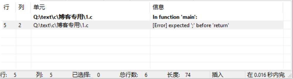 当没有“;”之后,再次进行编译后,编译器会提示“在return前缺少一个";" ”