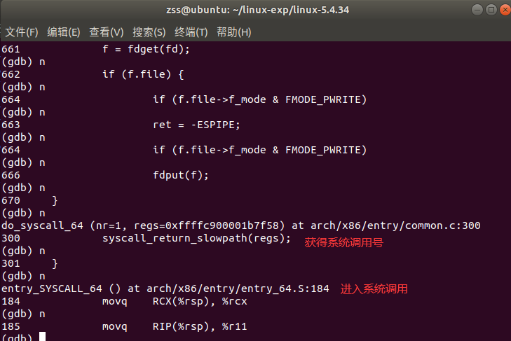 - 通过gdb跟踪该系统调用的内核处理过程