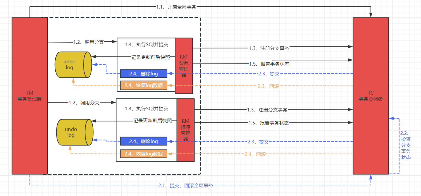 ·如果全局事务决策为回滚,TC会通知RM根据UNDO日志记录进行数据回滚,恢复到事务开始前的状态。