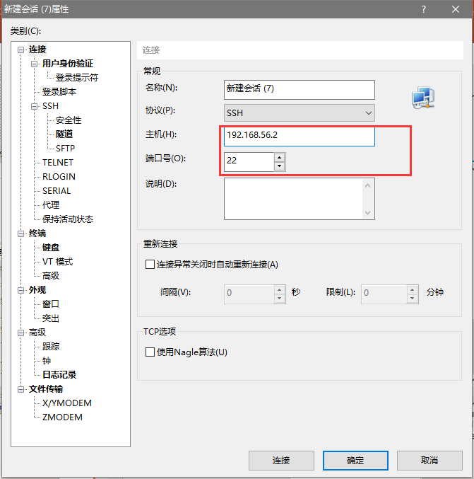 输入ip地址和端口号,默认22
