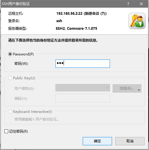 [ssh-GigabitEthernet0/0]ip address 192.168.56.2 24