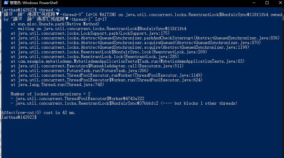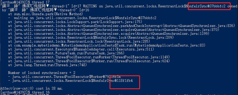 可以看出当前线程正在等待 ReentrantLock$NonfairSync@118f1fb4,而持有这个对象的线程又在等待当前线程释放,从而形成死锁!