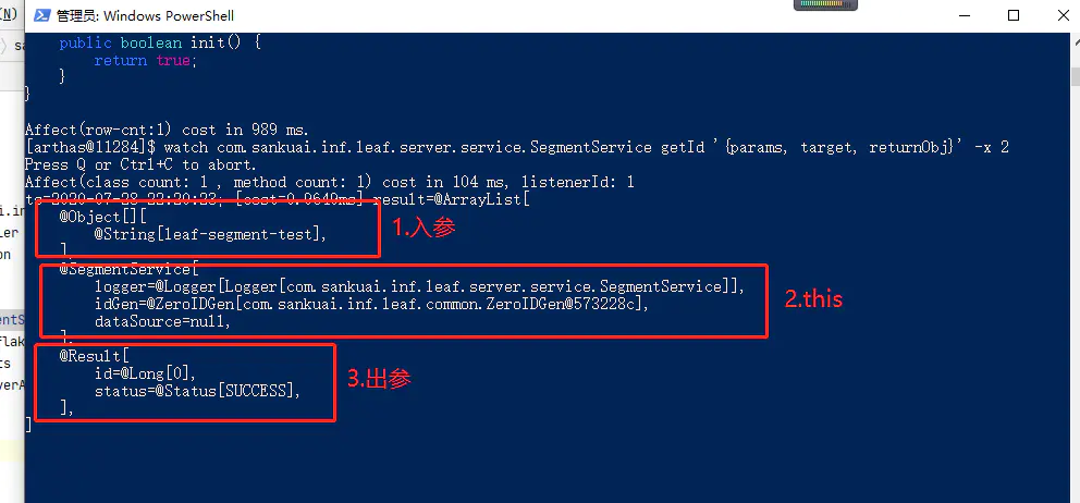 watch com.sankuai.inf.leaf.server.service.SegmentService getId '{params, target, returnObj}' -x 2