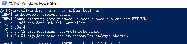 math-game进程是第 2 个,则输入 2,再输入回车/enter。Arthas 会 attach 到目标进程上,并输出日志: