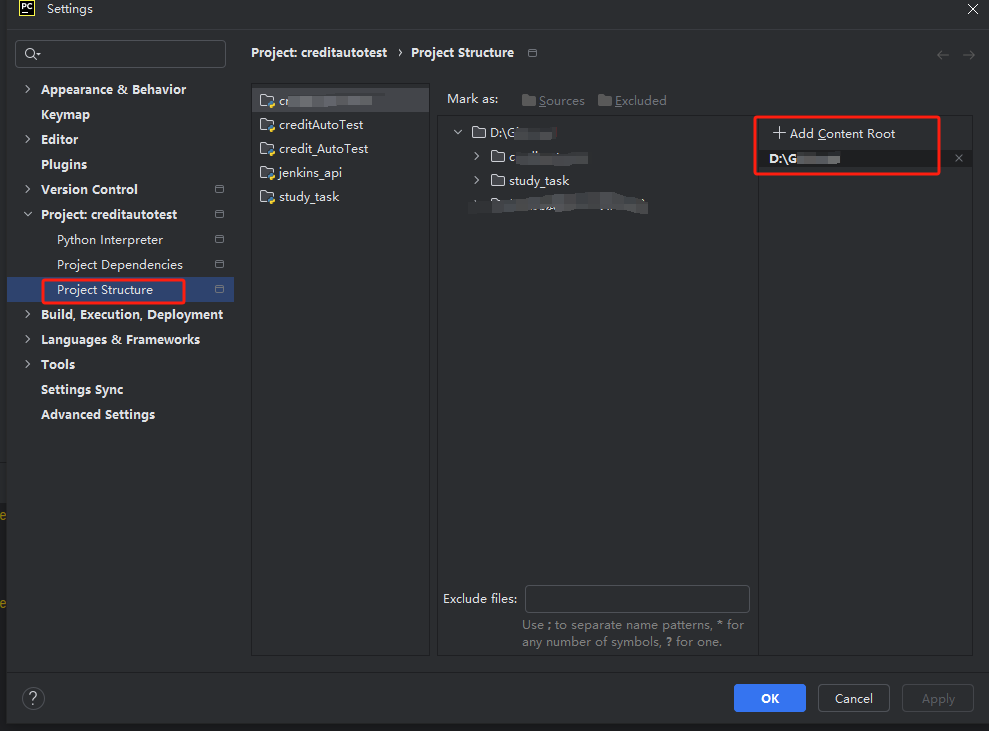 9、在Setting--Project--Project Struct中修改Content Root为查找不到得module的根路径