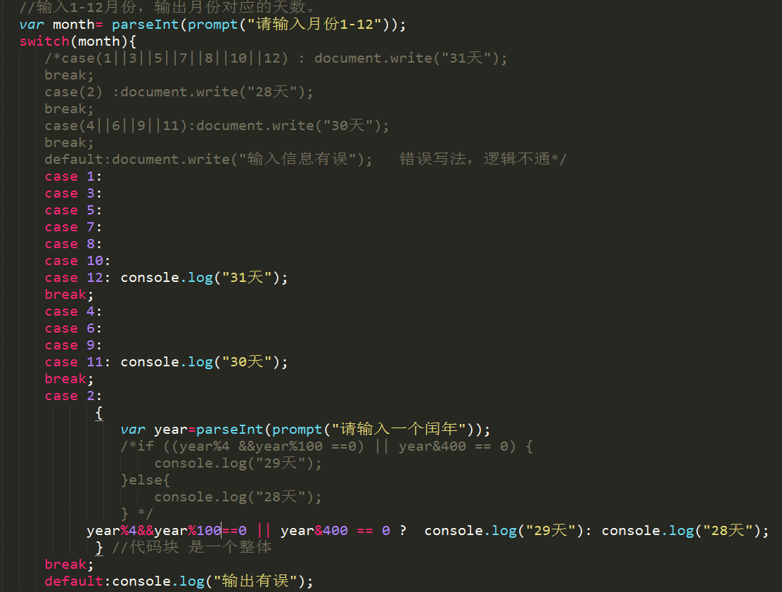 2》switch 结构 语法结构: