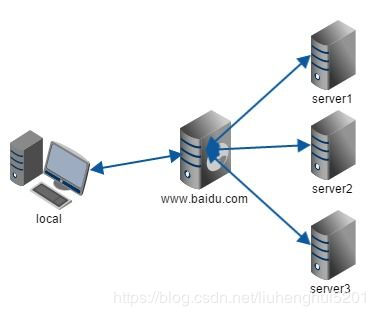 www.baidu.com就是反向代理服务器,做的主要内容是:根据请求内容分别派发给对应的服务器处理,服务器有返回后把内容返回给客户端。